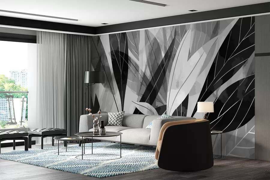 Abstrakcyjne kształty i formy w odcieniach bieli, szarości i czerni na rozmytym, teksturowanym tle