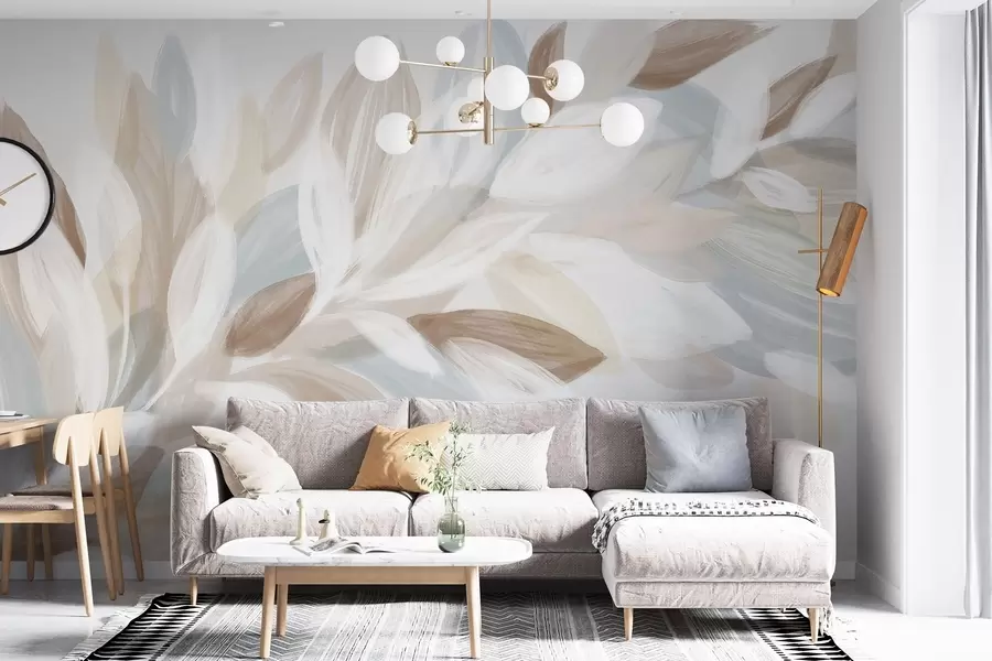 Miękkie, pastelowe liście w odcieniach bieli, beżu i jasnego błękitu tworzą delikatną i eteryczną kompozycję