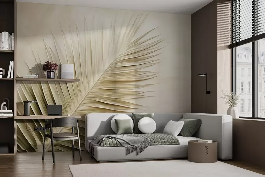 Beżowy liść palmy na miękkim, teksturowanym tle