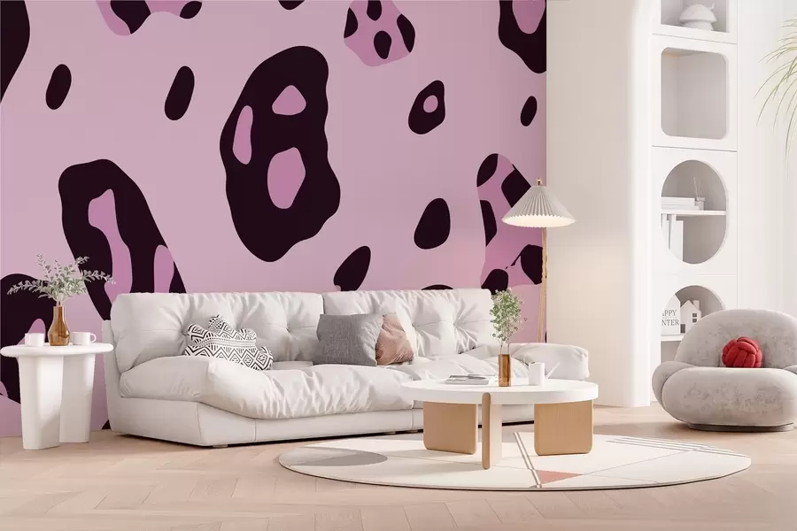 Abstrakcyjny wzór z falistymi liśćmi w delikatnych odcieniach różu i beżu na jasnym tle z subtelnymi detalami tekstury