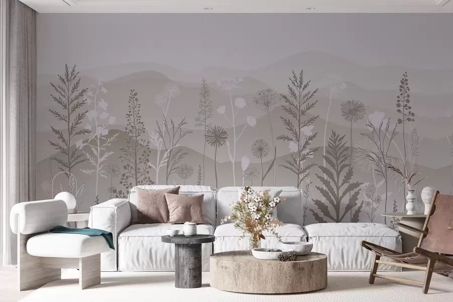 tapeta w stylu eko, polne kwiaty w jasnobrązowych odcieniach