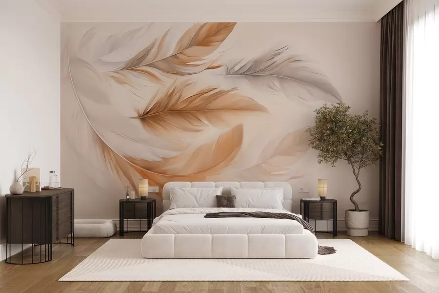 Nieważkie pióra w miękkiej mgiełce ciepłych tonów