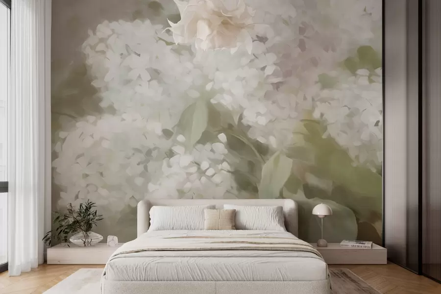 Bogate wnętrza, złote dodatki i liczne akcesoria – tak można podsumować najmodniejsze rozwiązania w stylu glamour. Doskonałym uzupełnieniem każdej wystawnej aranżacji stanowią piękne tapety nad łóżko do sypialni. Wybierz klasyczne białe pióra, tworzące niemal abstrakcyjny wzór, aby uspokoić pełne przepychu wnętrze. Z kolei bogato zdobione piękne kwiaty oraz liście będą stanowić dodatkową dekorację w małym pokoju.