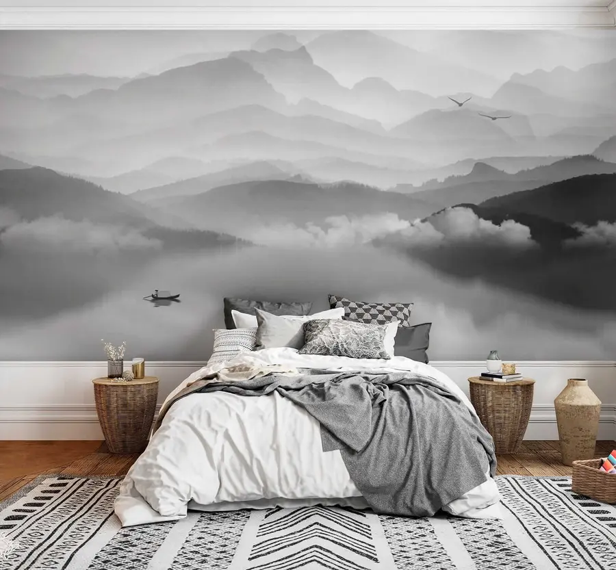 Czarno-białe fototapety do sypialni 3D sprawdzą się w nowoczesnej aranżacji. Surowy styl loftowy wzbogacisz nadrukiem betonowych bloków, który będzie stanowić niemal manifestację Twoich poglądów estetycznych. Jeśli jednak chcesz przełamać minimalizm i ożywić wnętrz postaw na eleganckie geometryczne wzory lub graficzne czarne dmuchawce na białym tle. Także bajkowy las we mgle pozwoli odmienić styl nowoczesny przy jednoczesnym zachowaniu jego niepowtarzalnego charakteru.