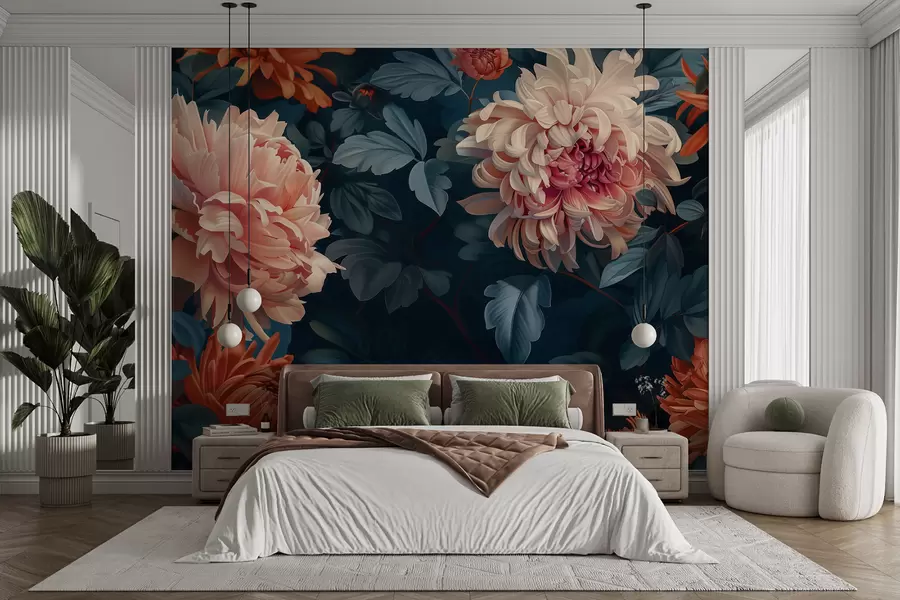 Grafika przedstawiająca kwiaty rysująca się na ścianie poddasza