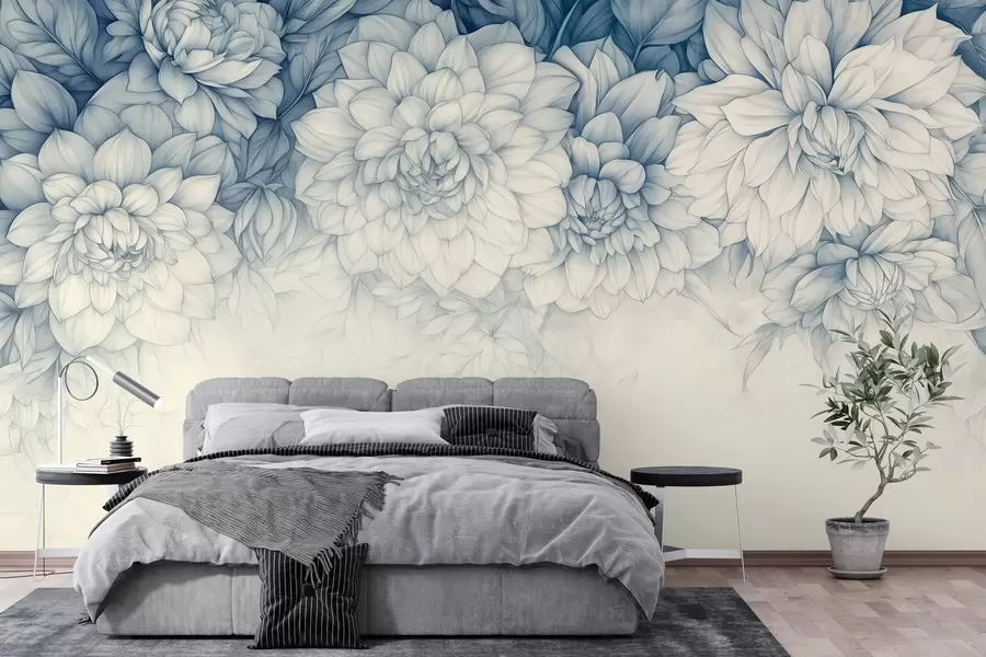 Liniowe delikatne kwiaty w niebieskich odcieniach