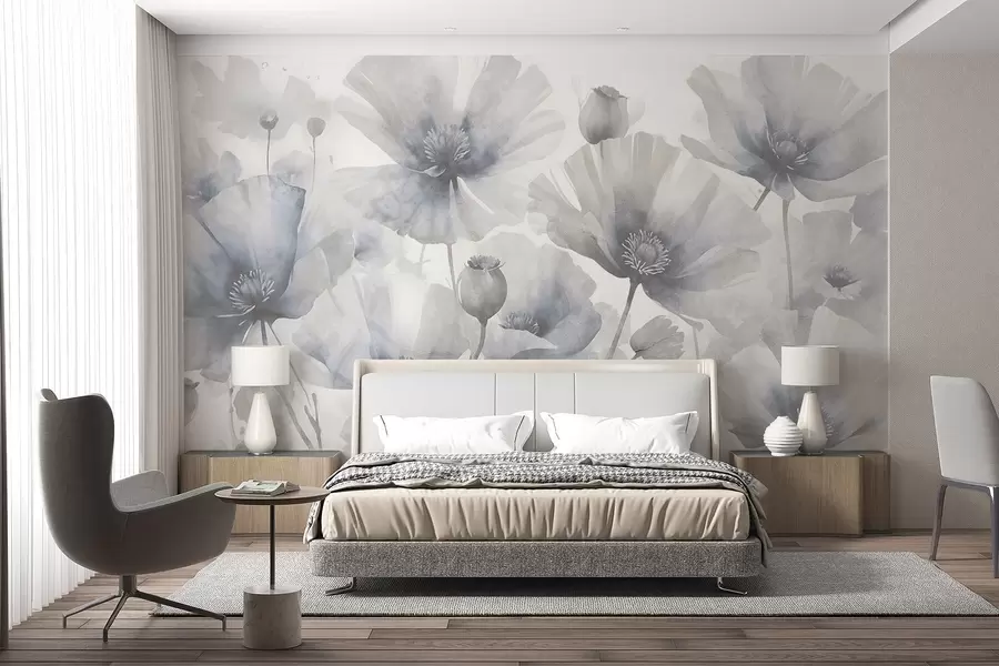 tapeta w stylu płaskorzeźby z kwiatami ogrodowymi