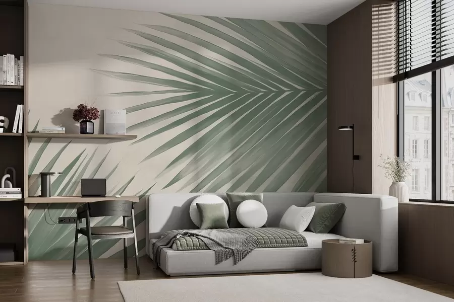 Duże tropikalne liście w powściągliwych, delikatnych pastelowych odcieniach