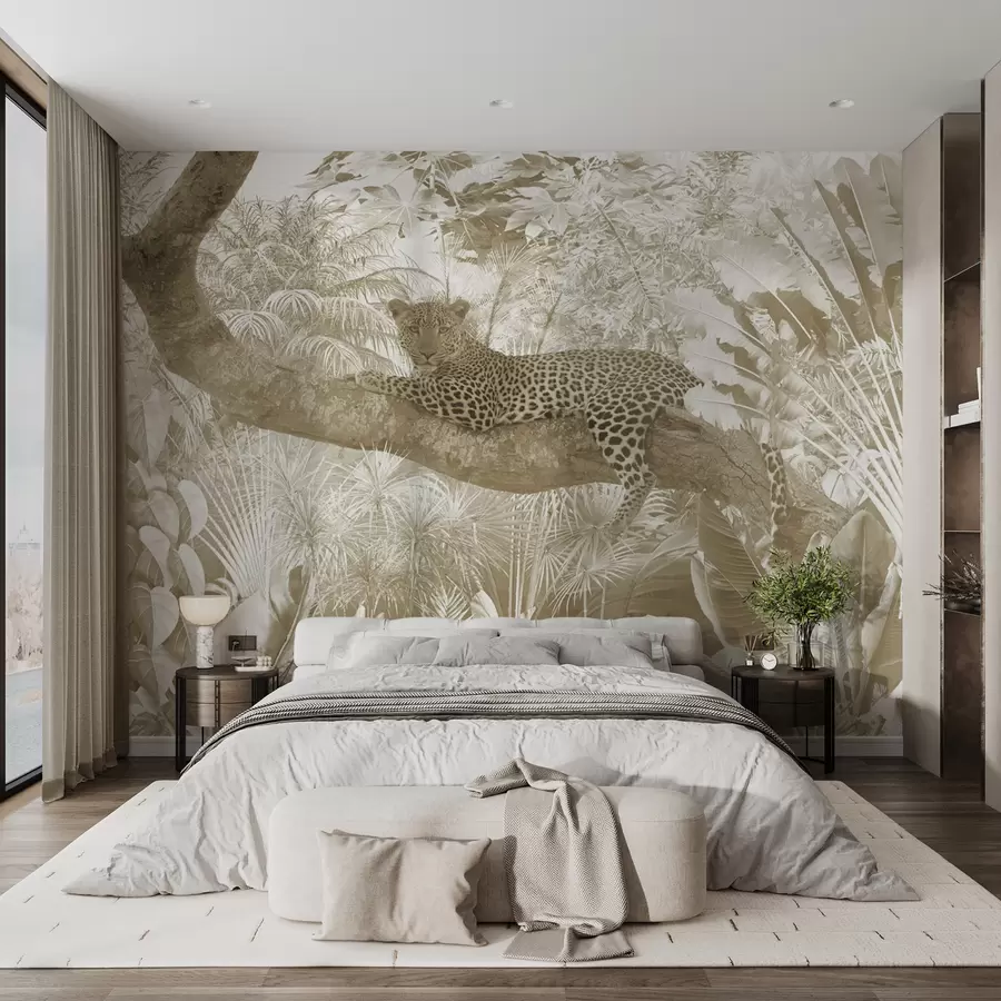 Ilustracja oliwek, kwiatowy wzór, tropikalny, akwarela, duże liście, beżowe kolory