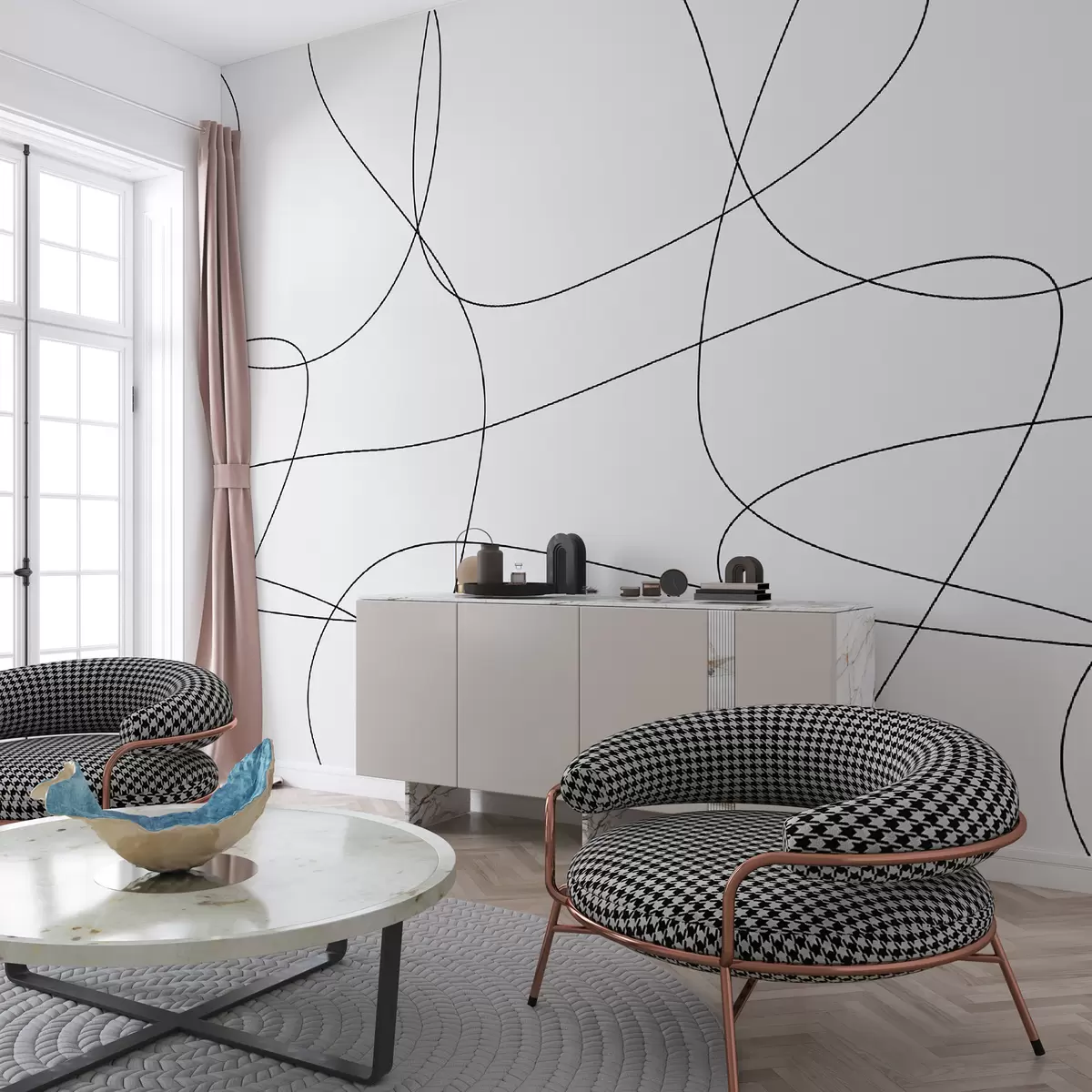 Fototapeta Stylowa tapeta z liniami w stylu boho Nr u98563