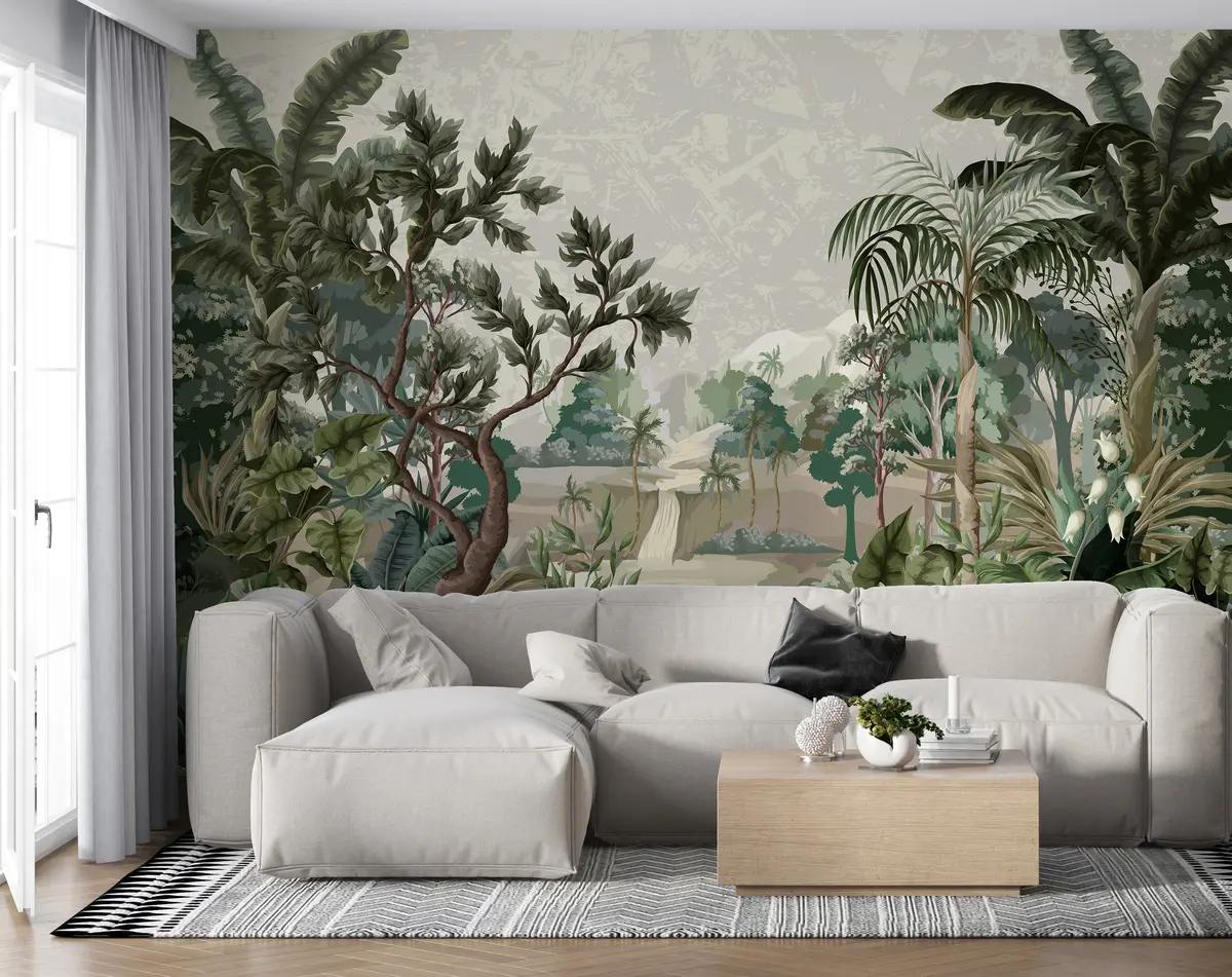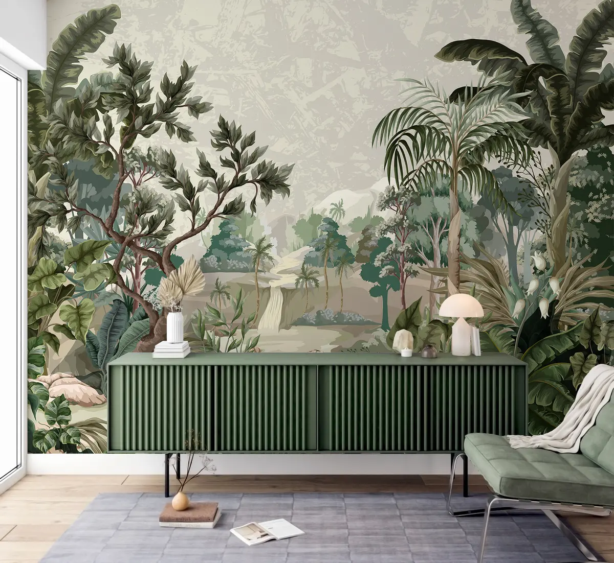 Fototapeta Dżungla z rzeką i palmami Nr u95915