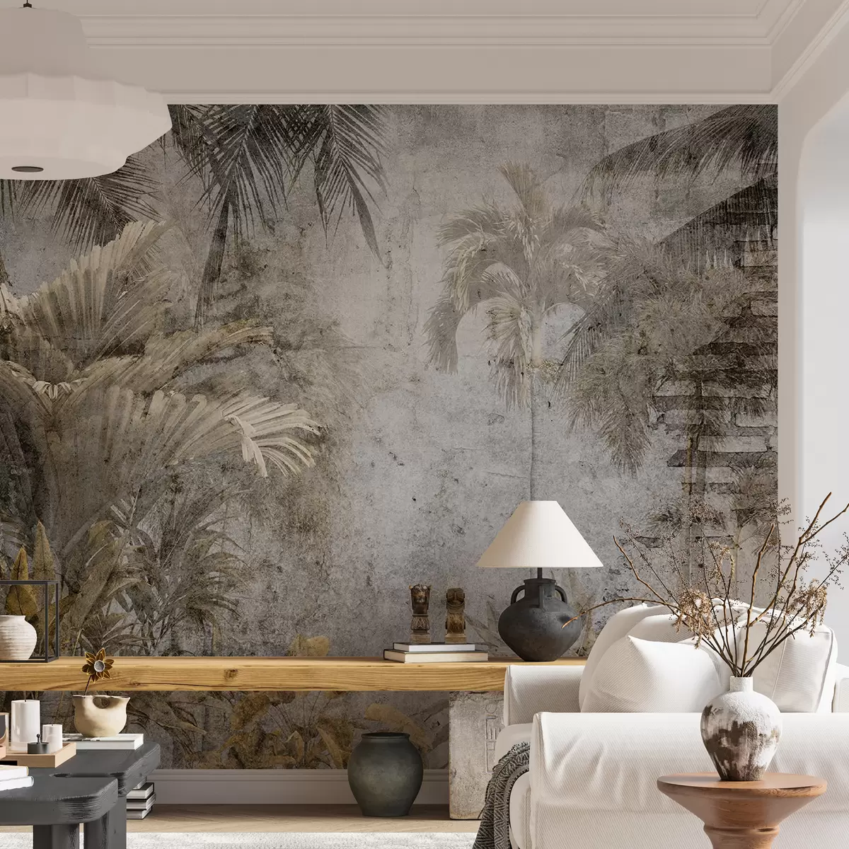 Fototapeta Tropikalny las na betonowej ścianie Nr u71248