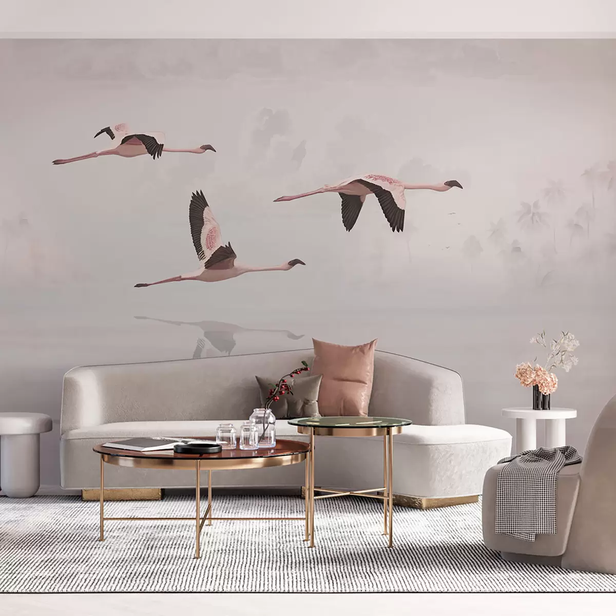 Fototapeta Różowe flamingi nad plażą i morzem w tropikalnej dżungli Nr u97457