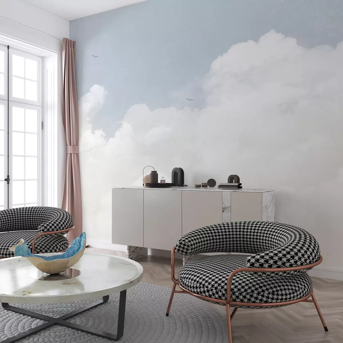 Fototapeta Chmury w stylu vintage na błękitnym niebie Nr u96783v3