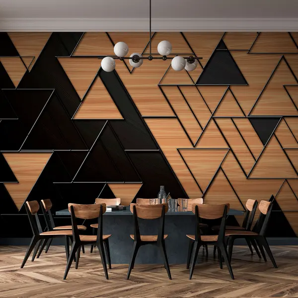 Fototapeta trójkąty 3D w kolorze ciemnoszarym i drewnopodobnym z wytłoczonymi liniami Nr u75167