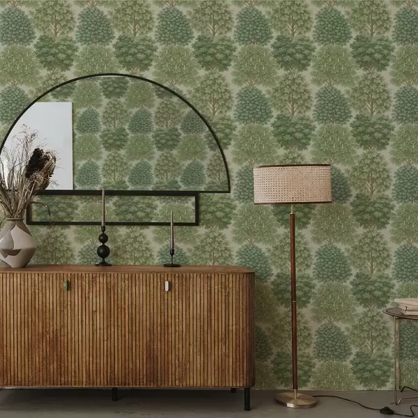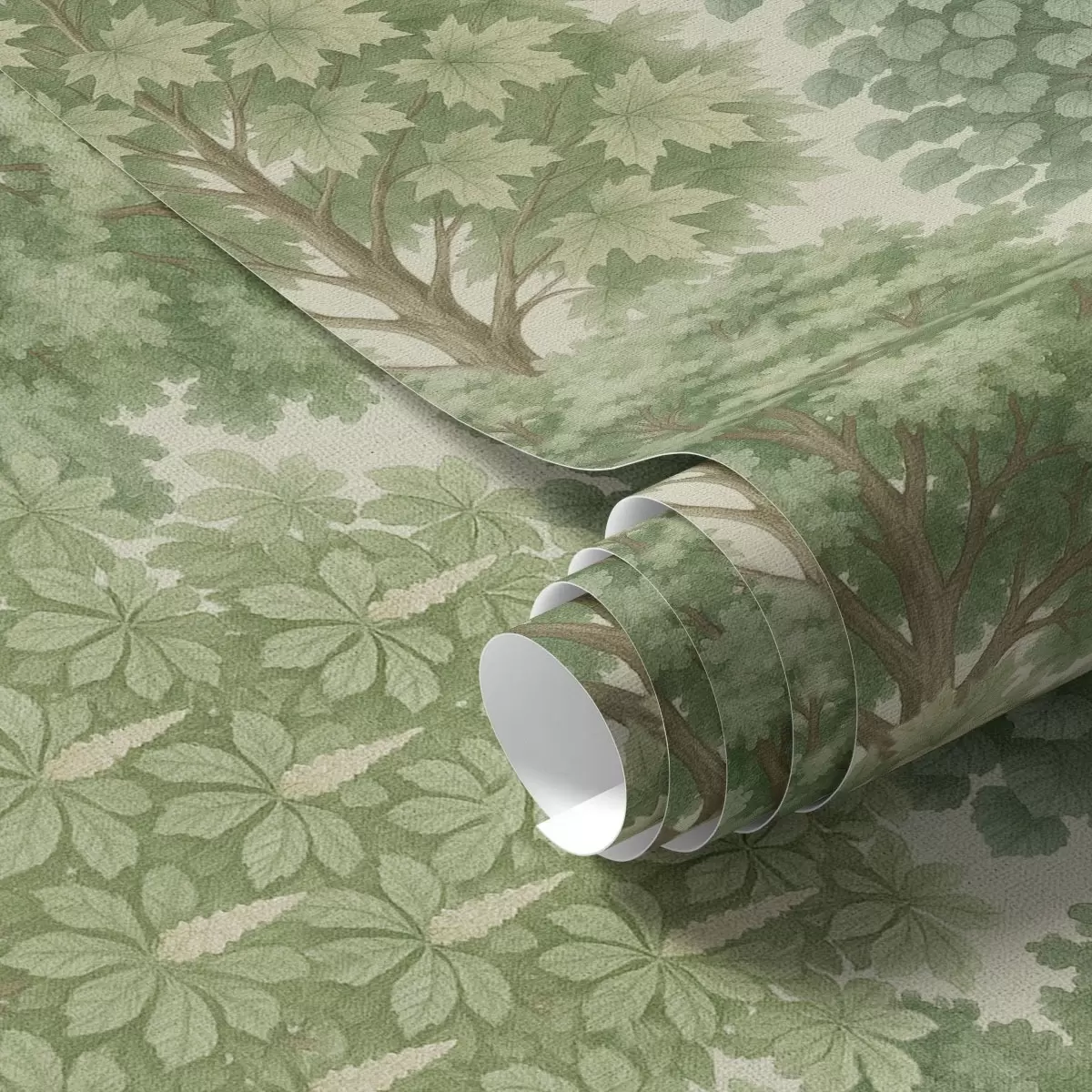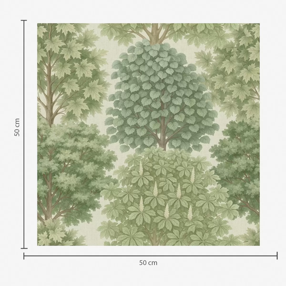 Tapeta Ogród drzew w delikatnych odcieniach zieleni na jasnym tle a00775