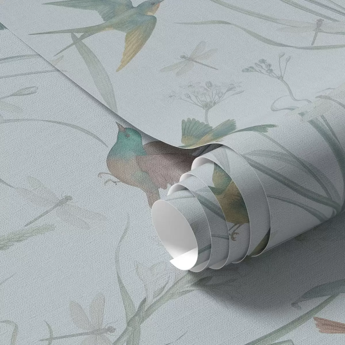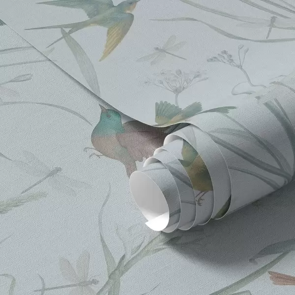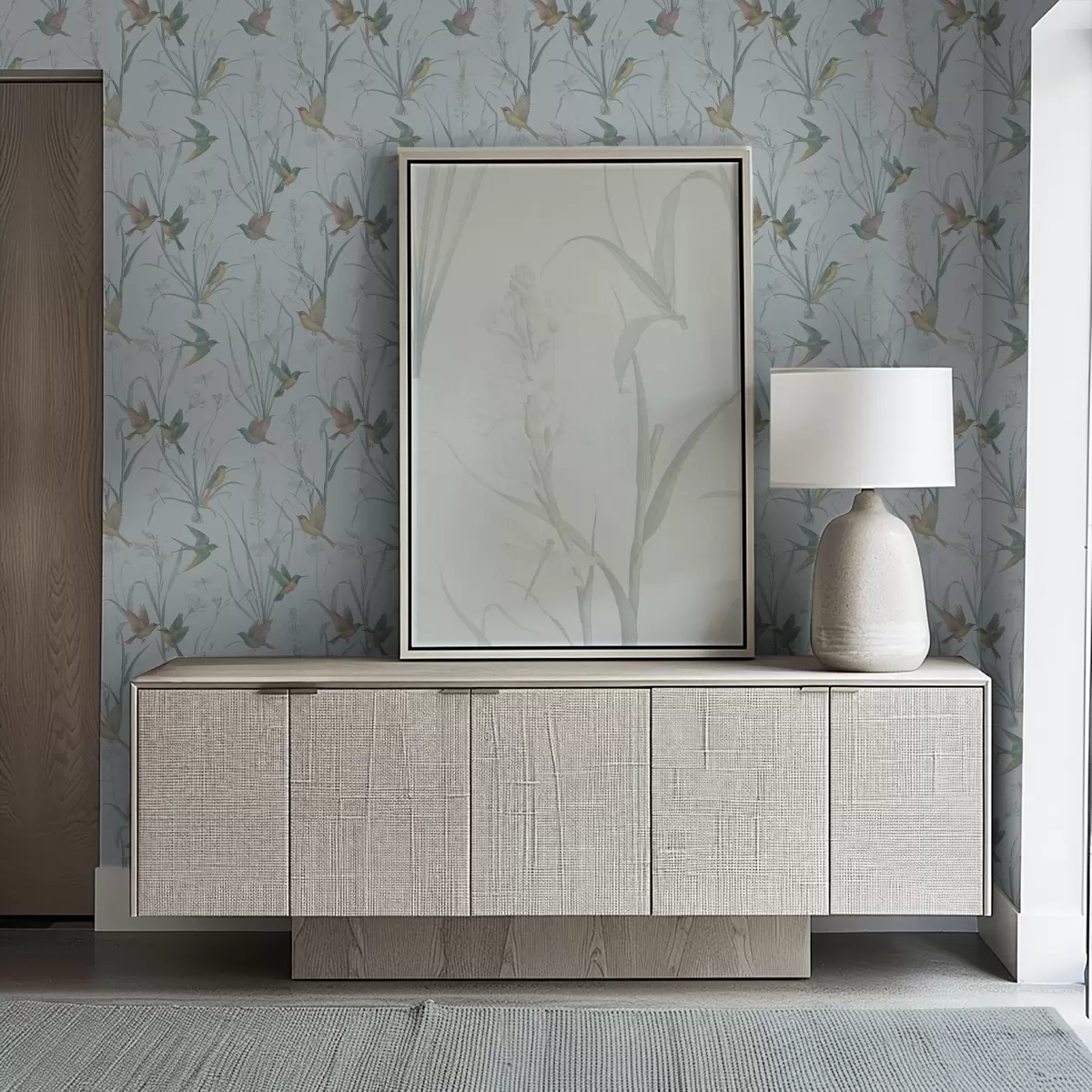 Tapety Ptaki wśród traw łąkowych na szaro-niebieskim tle Nr. a00776