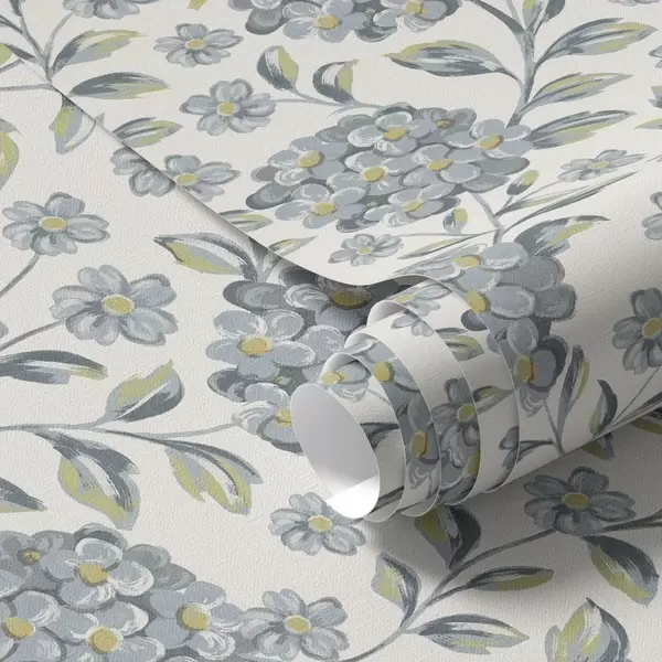 Tapety Kwitnące krzewy i liście w szaro-niebieskiej palecie barw Nr. a00778