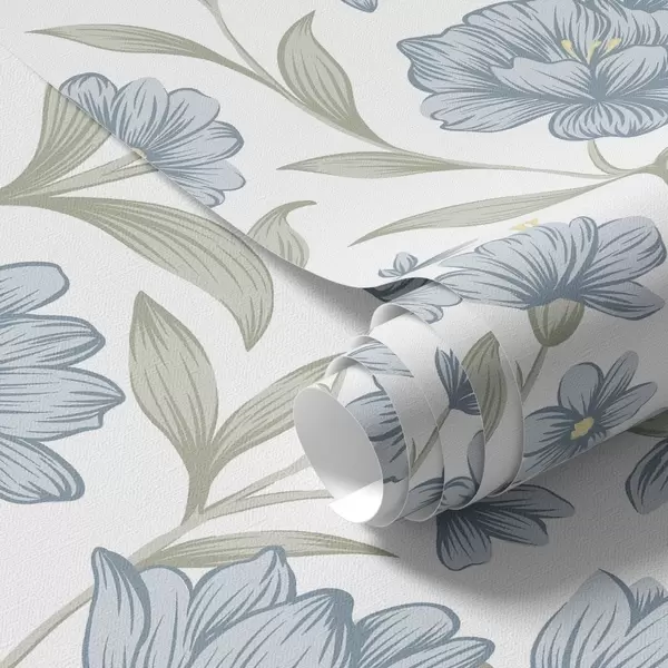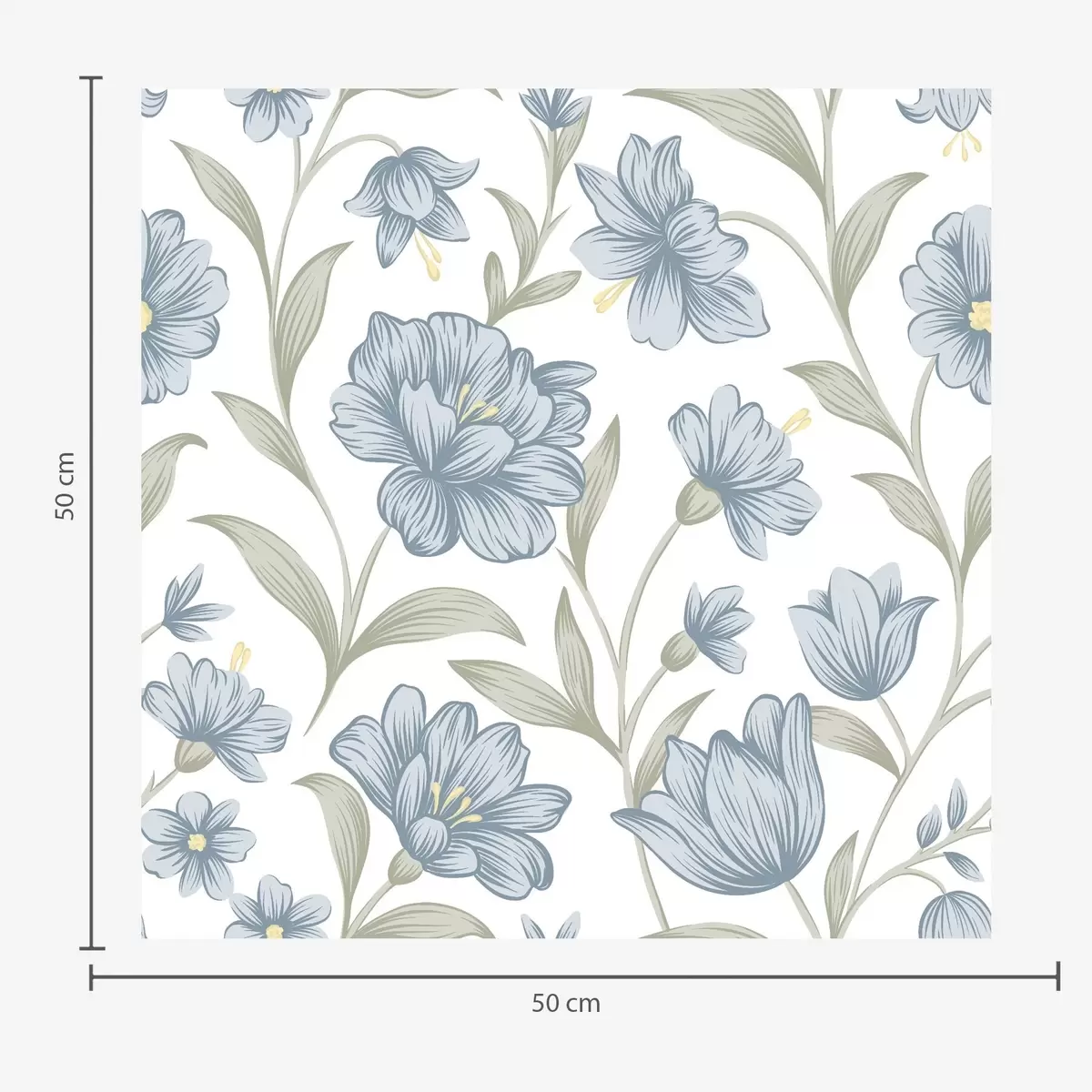 Tapety Zadymione niebieskie kwiaty z oliwkowymi liśćmi na białym tle Nr. a00780