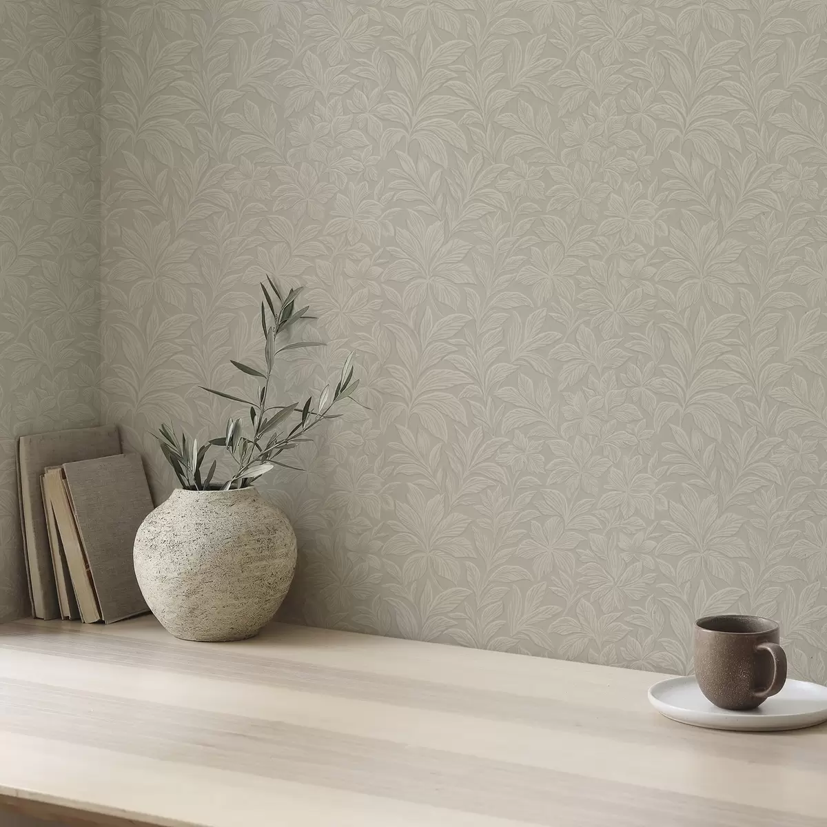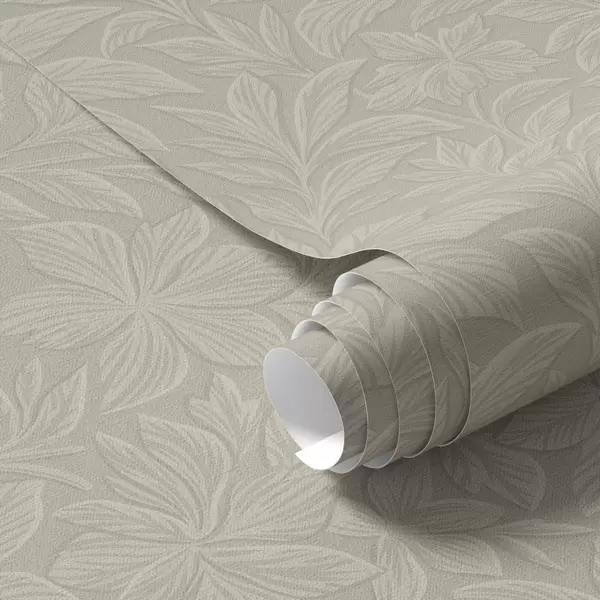 Tapety Tłoczone sylwetki liści, ciepły kolor taupe Nr. a00781