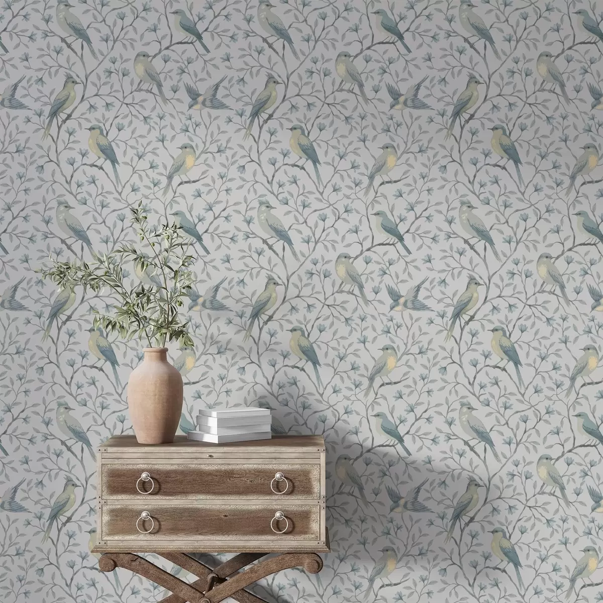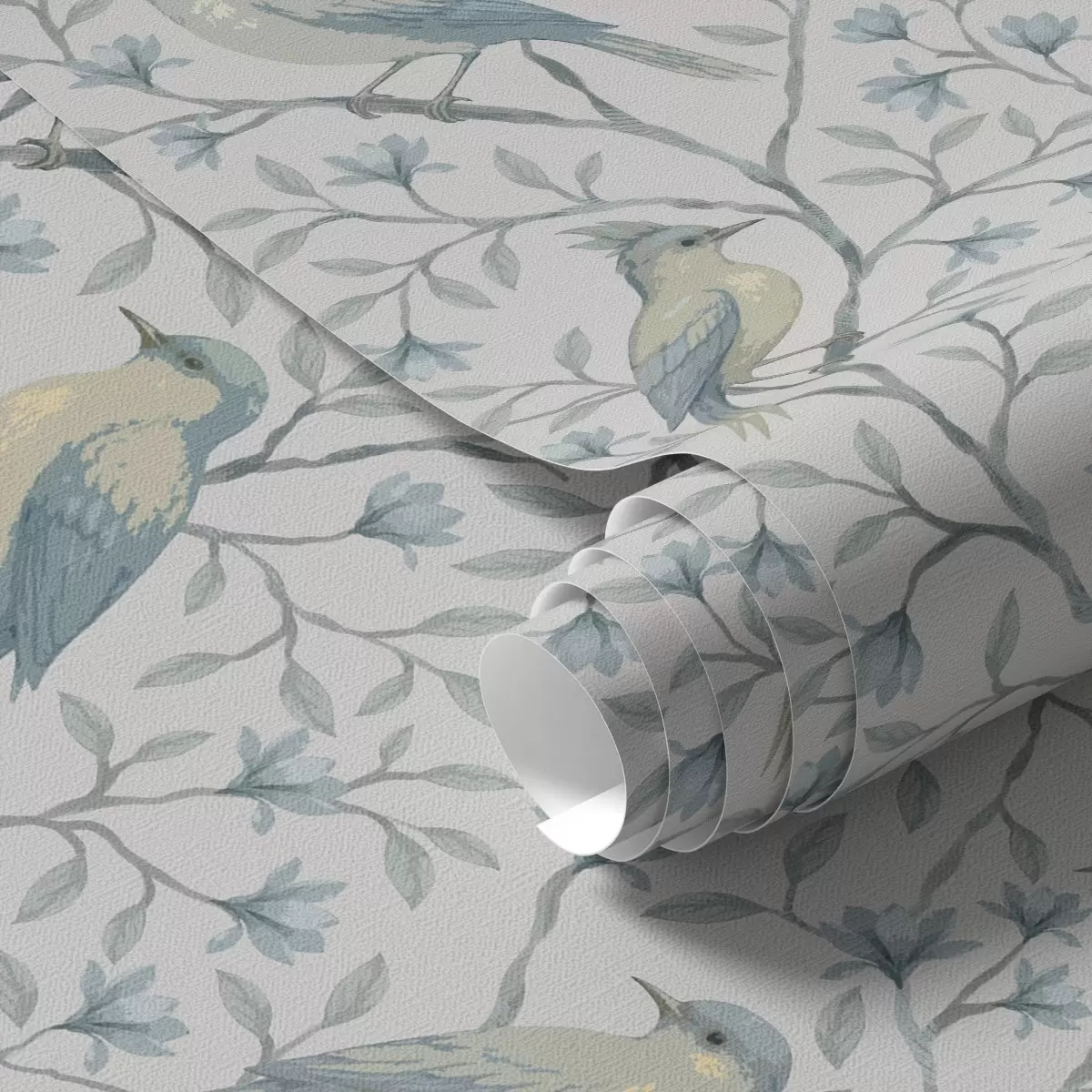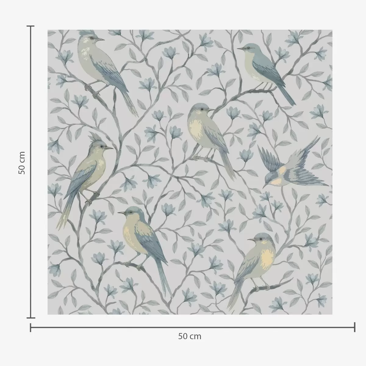 Tapety Ptaki na gałęziach, szaro-niebieska kolorystyka Nr. a00782