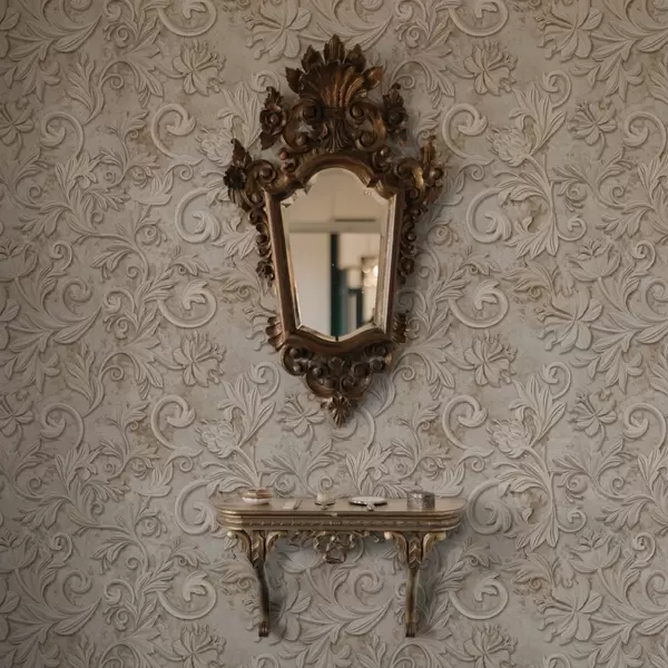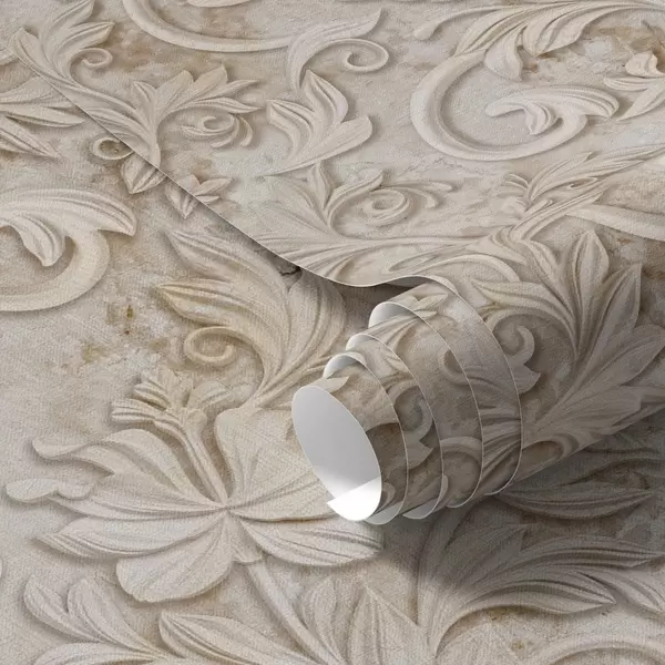 Tapety Kamienna płaskorzeźba z kwiatowymi ornamentami, vintage beż Nr. a00784