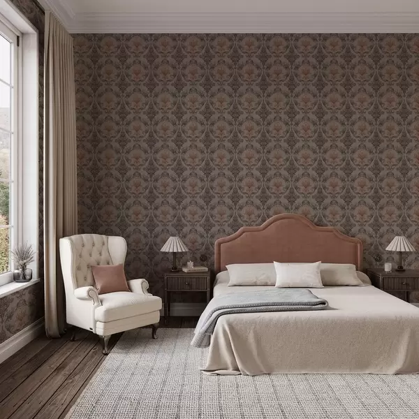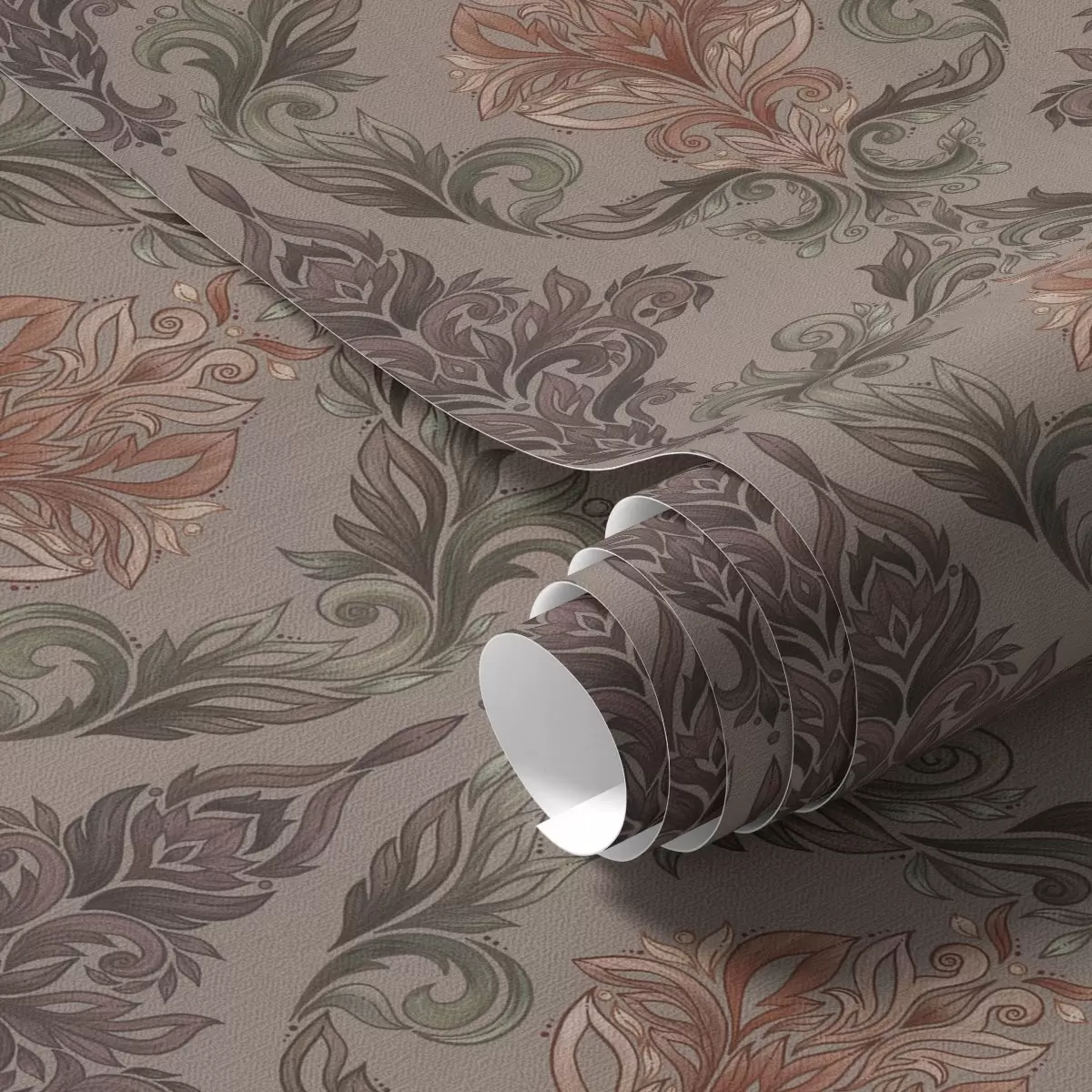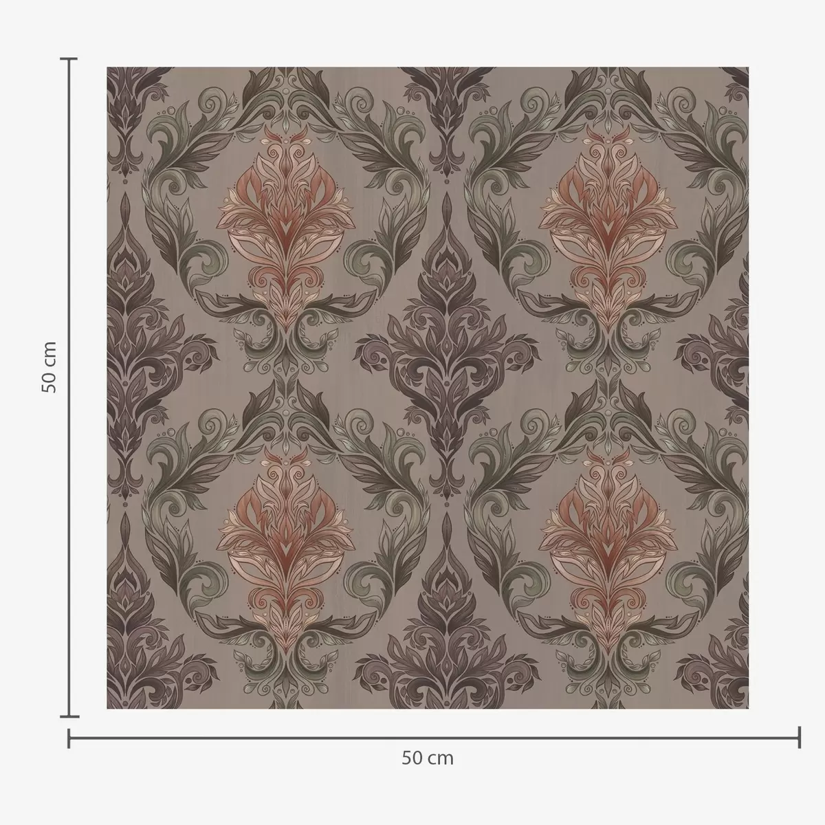 Tapety Damaszek w brązowo-terakotowej palecie, ciepłe szare tło Nr. a00828v2