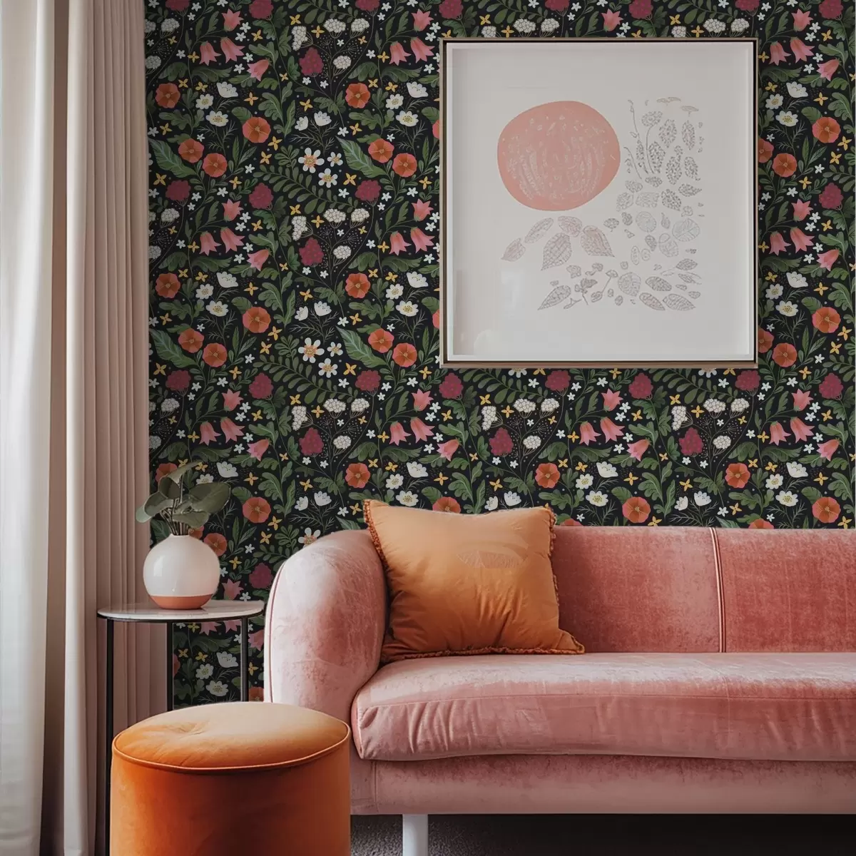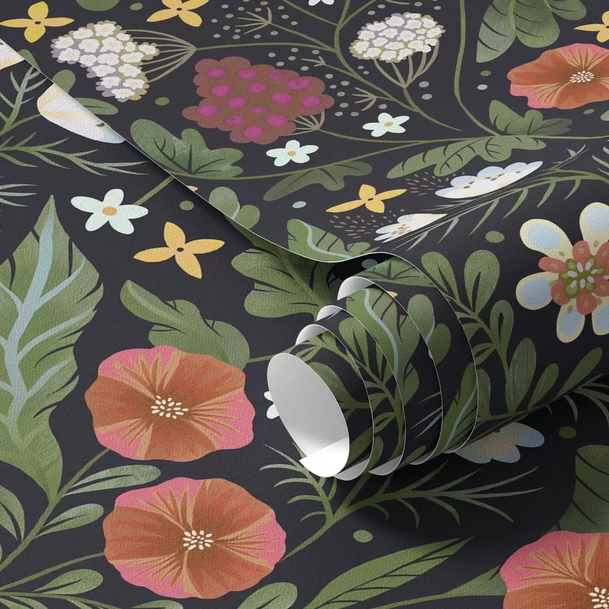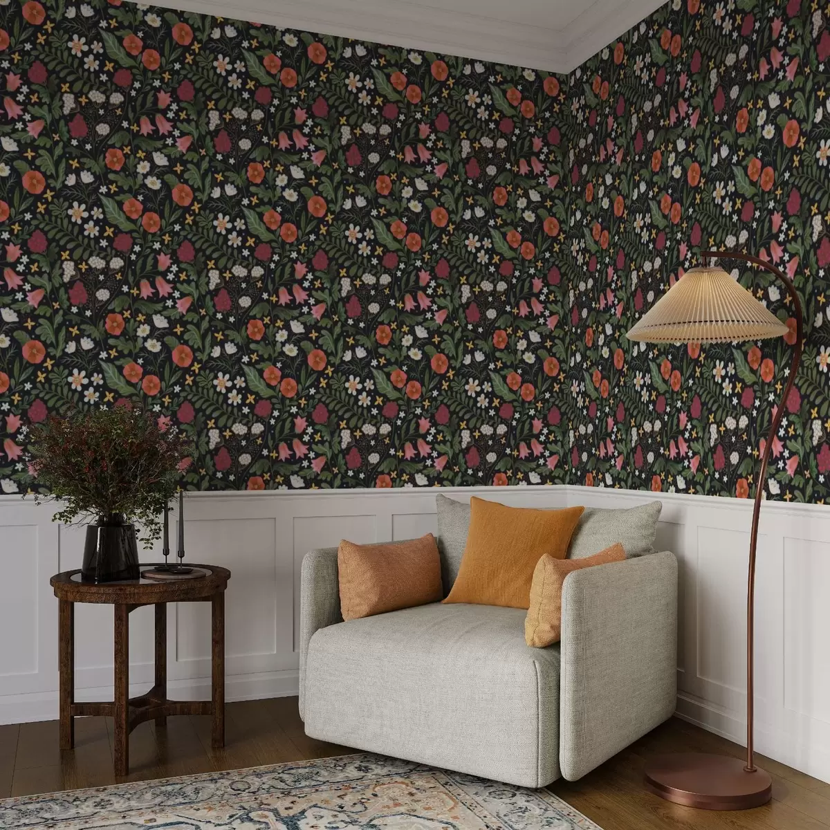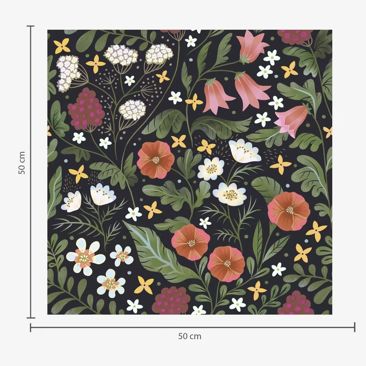 Tapety Dzikie kwiaty i jagody na głębokim czarnym tle Nr. a00849v3
