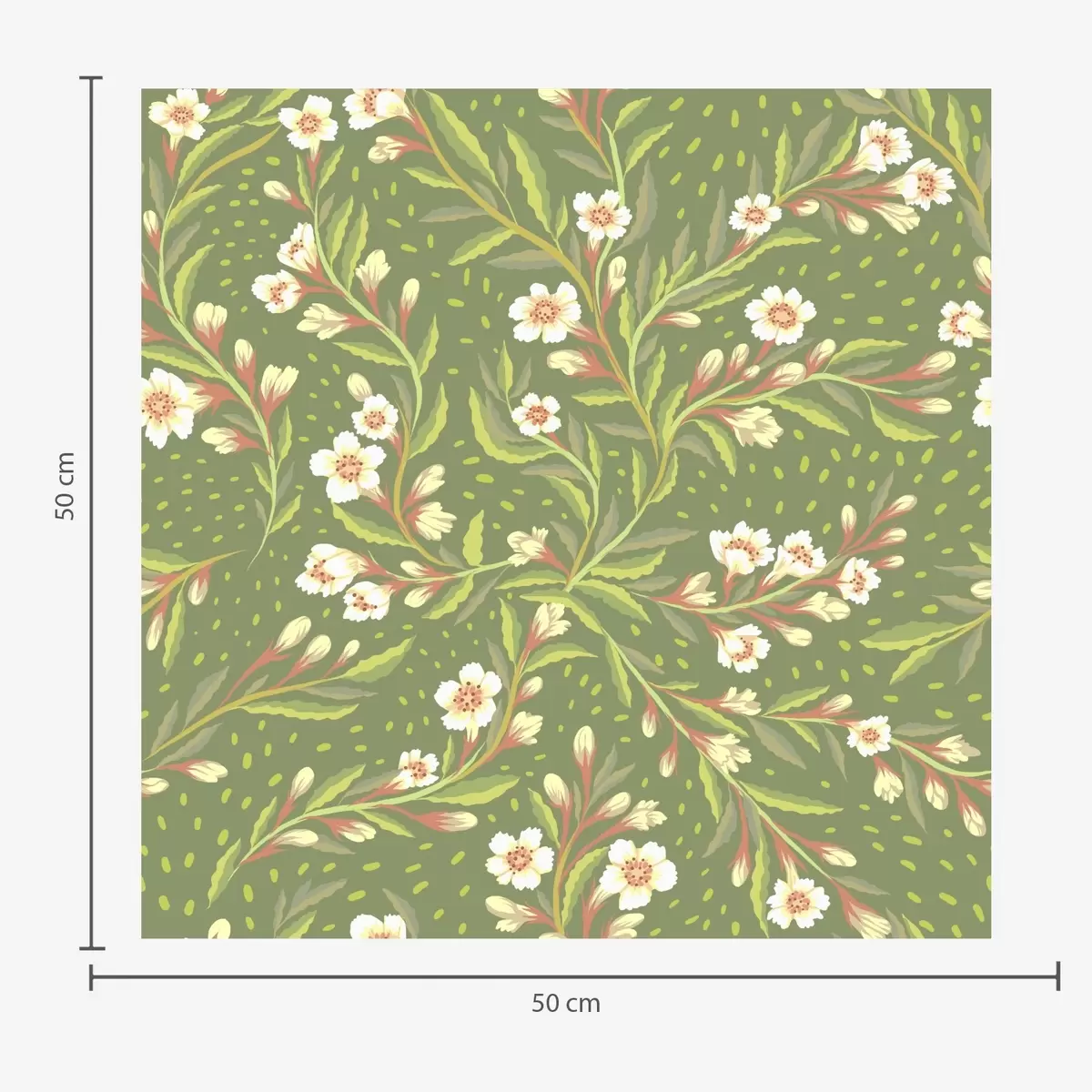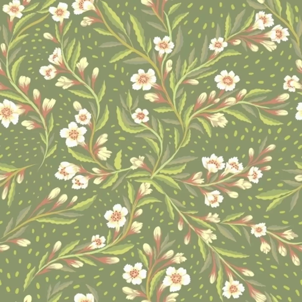 Fototapeta Rozłożyste gałęzie z kremowymi kwiatami na oliwkowym tle Nr a00850