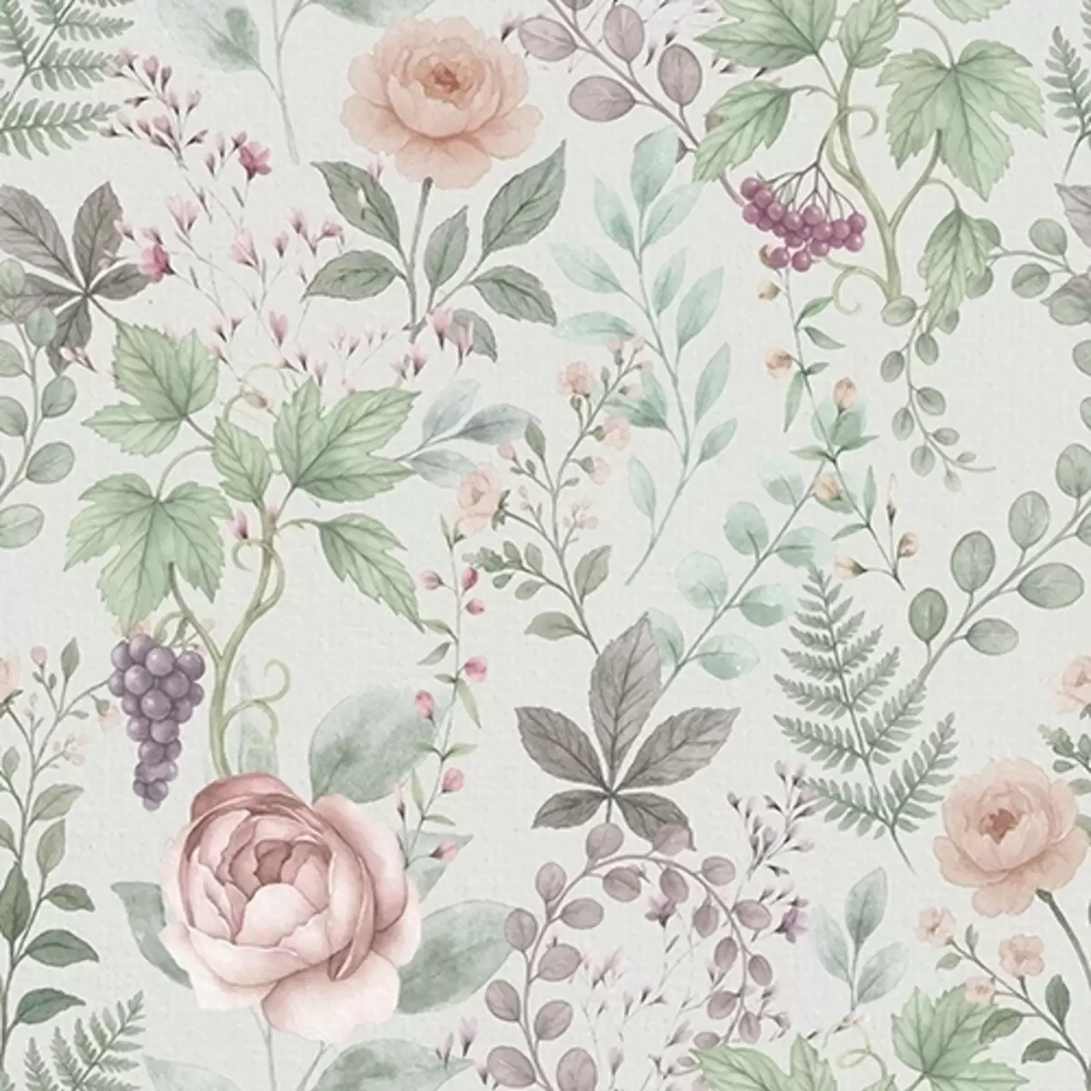 Fototapeta Pastelowy ogród z różami, paprociami i winogronami Nr a00867