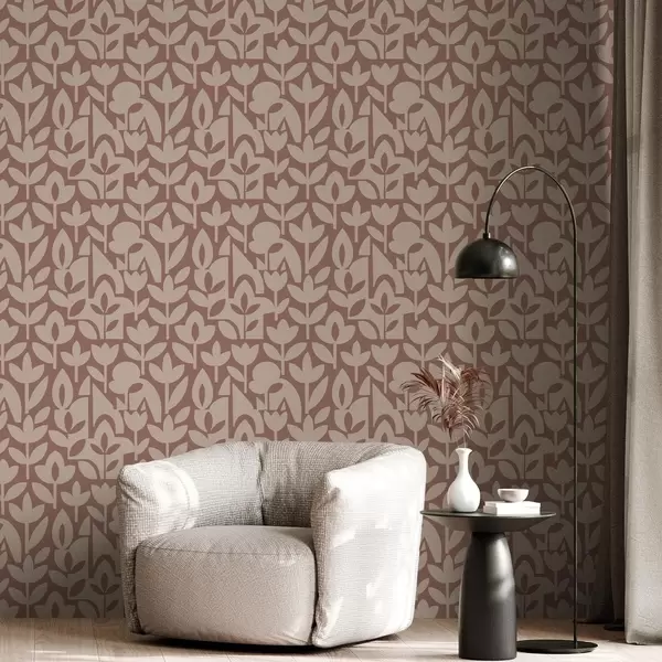 Fototapeta Geometryczne kwiatowe sylwetki w kolorze terakoty i kremowym Nr a00875v2