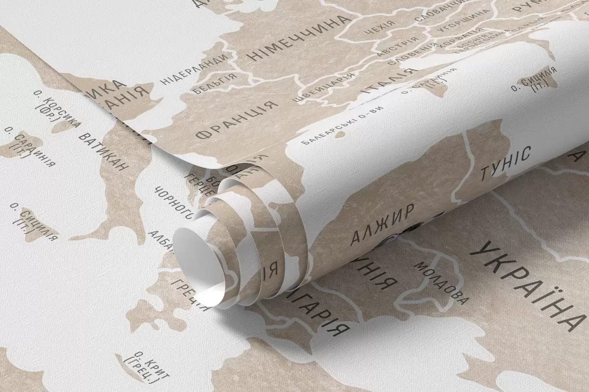 Fototapeta Mapa dla dzieci w stylu akwareli z motywami zwierząt i balonów na ogrzane powietrze. Język ukraiński. Kolor beżowy. Nr c00001ukv2