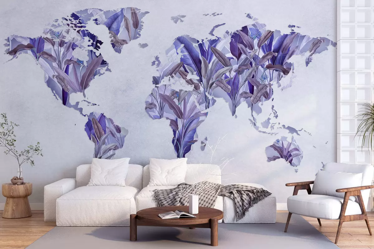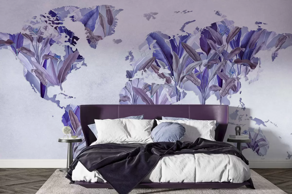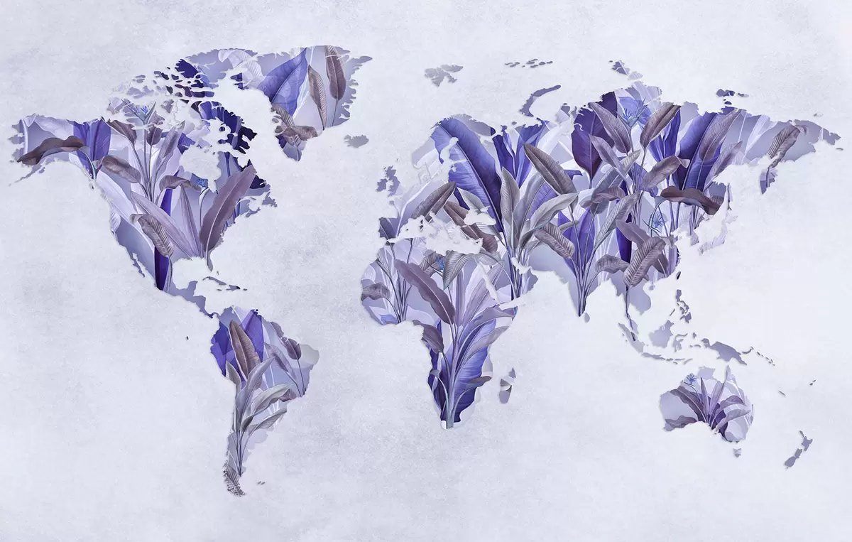 Fototapeta Fioletowa mapa świata wykonana z liści bananowca Nr c00007v1