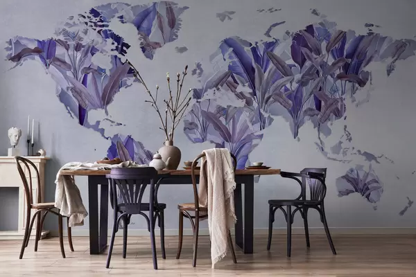 Fototapeta Fioletowa mapa świata wykonana z liści bananowca Nr c00007v1