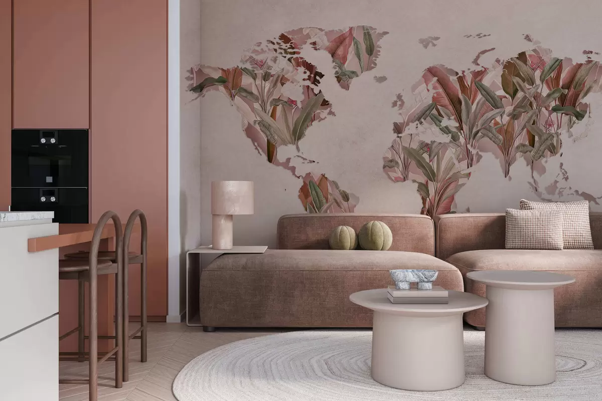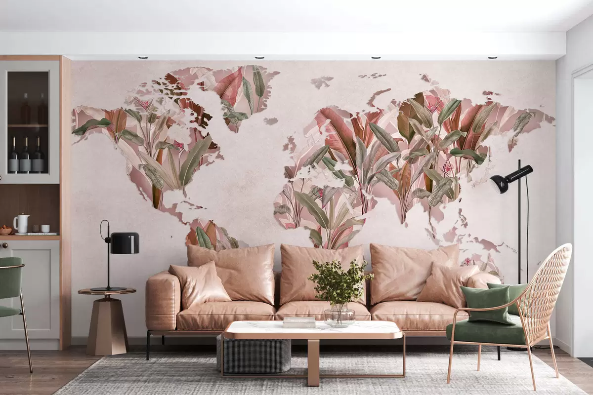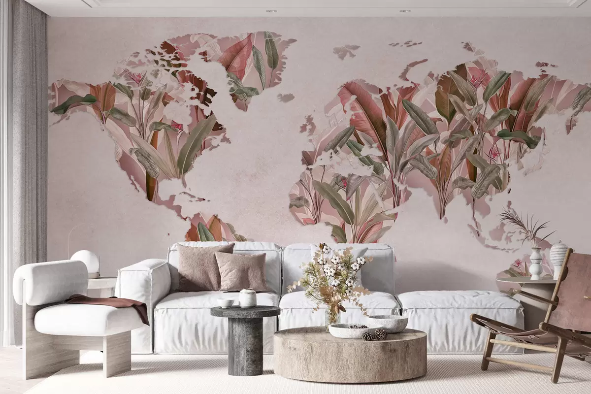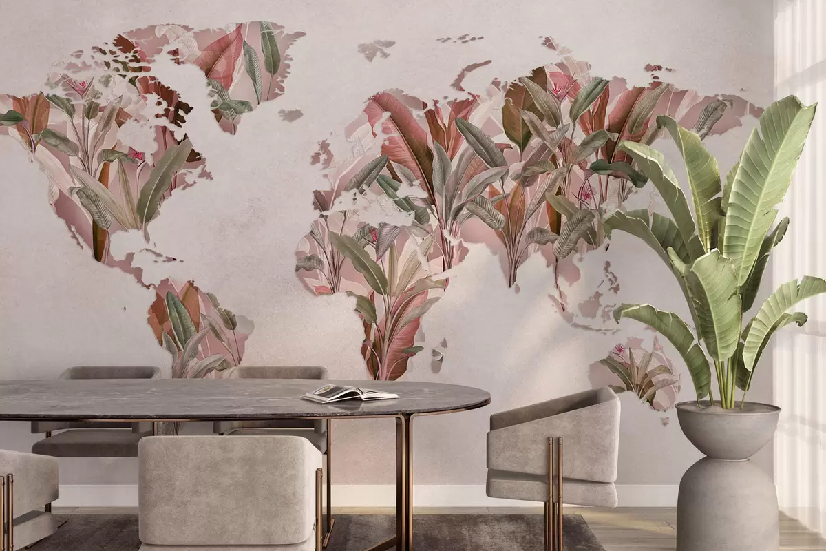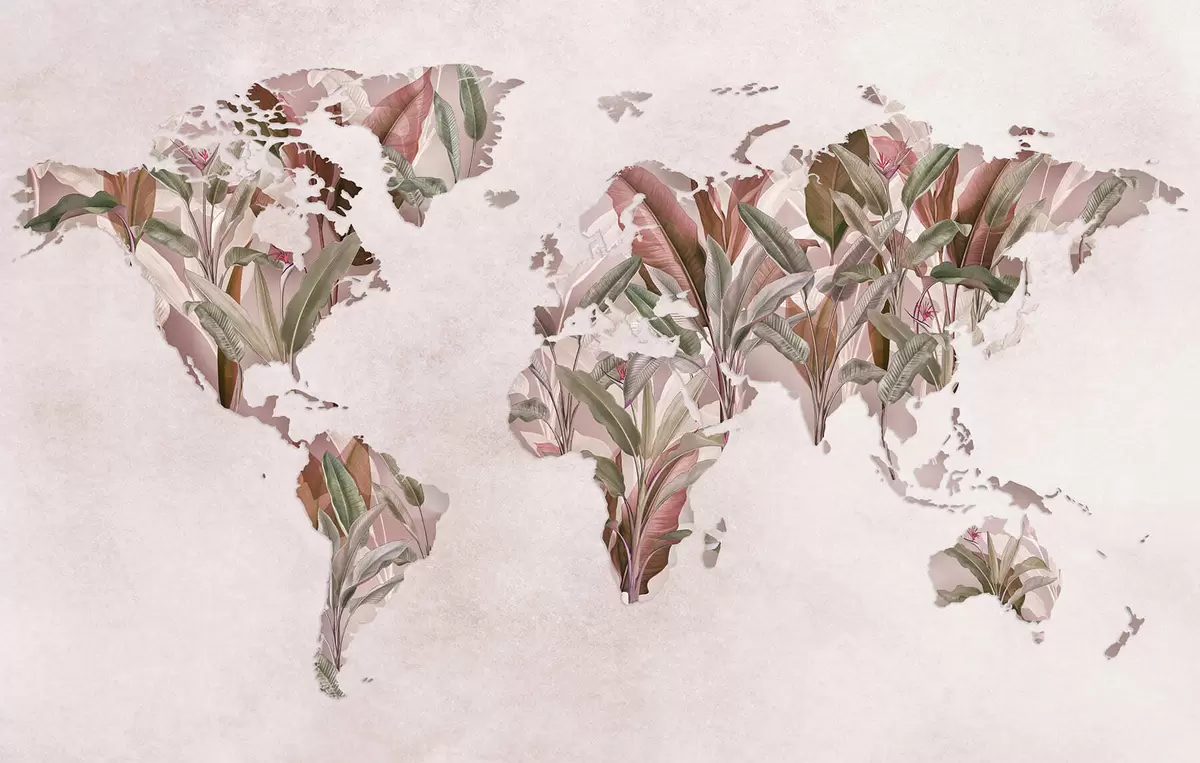 Fototapeta Różowa mapa świata wykonana z liści bananowca Nr c00007v2
