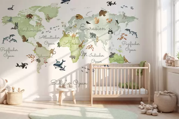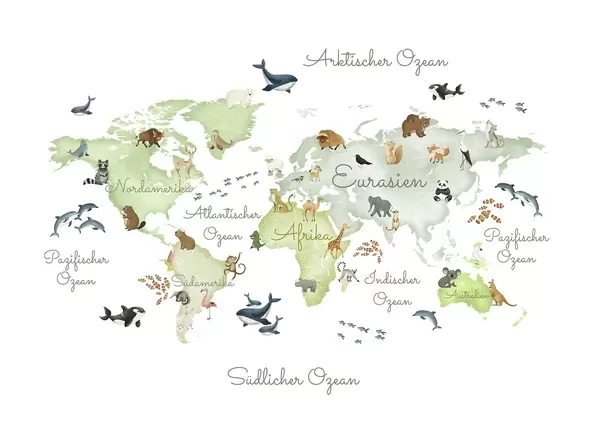Fototapeta Mapa w stylu akwareli przedstawiająca zwierzęta. Napisy w języku niemieckim Nr c00012dev2