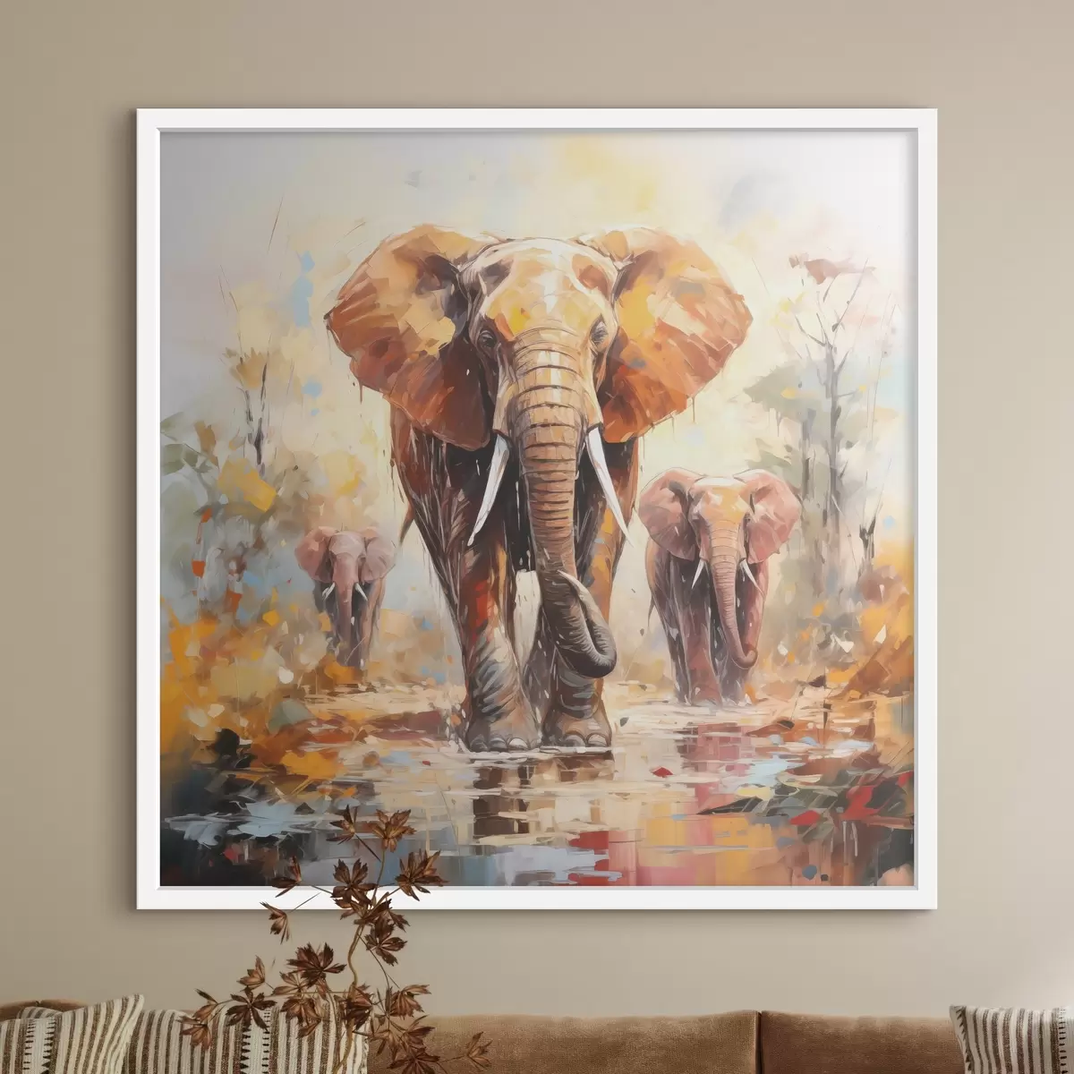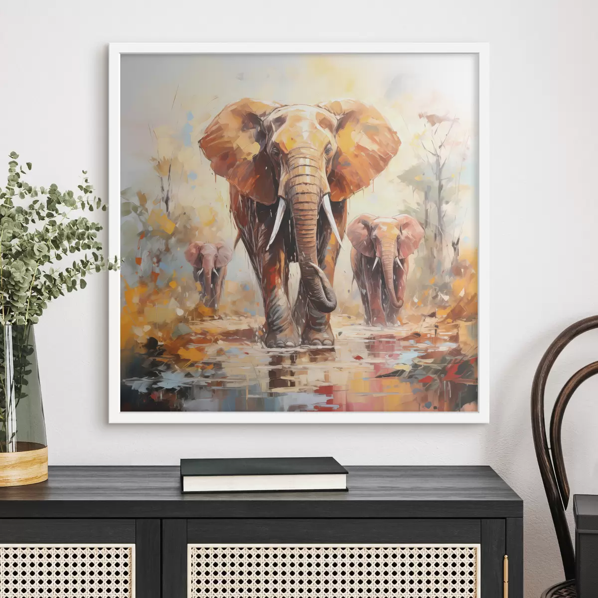Poster Stado słoni na sawannie, obraz olejny, sztuka abstrakcyjna Nr f39573