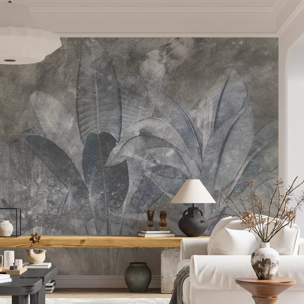 Fototapeta Liście bananowca na kamiennym tle Nr u73884v3