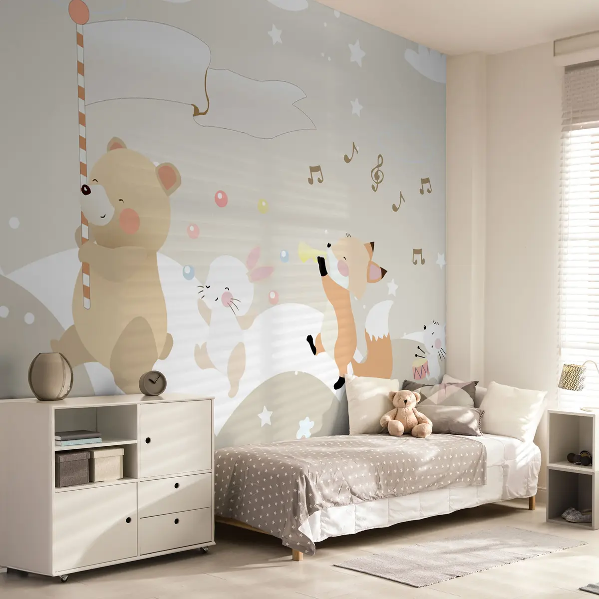 Fototapeta Projekt tapety do pokoju dziecięcego z uroczymi zwierzętami w różowych kolorach Nr u98969
