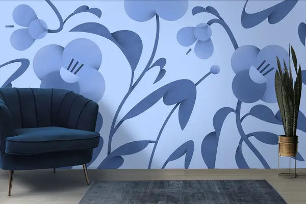 Fototapeta Nadruk botaniczny z ozdobnymi kwiatami w kolorze niebieskim Nr u99196v8
