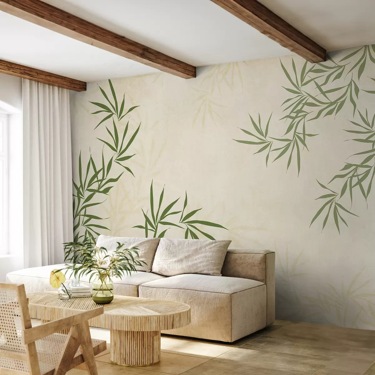 Fototapeta Gałązki roślin, bambus, styl vintage, tekstura tło, kolor żółty, zielony Nr w00817
