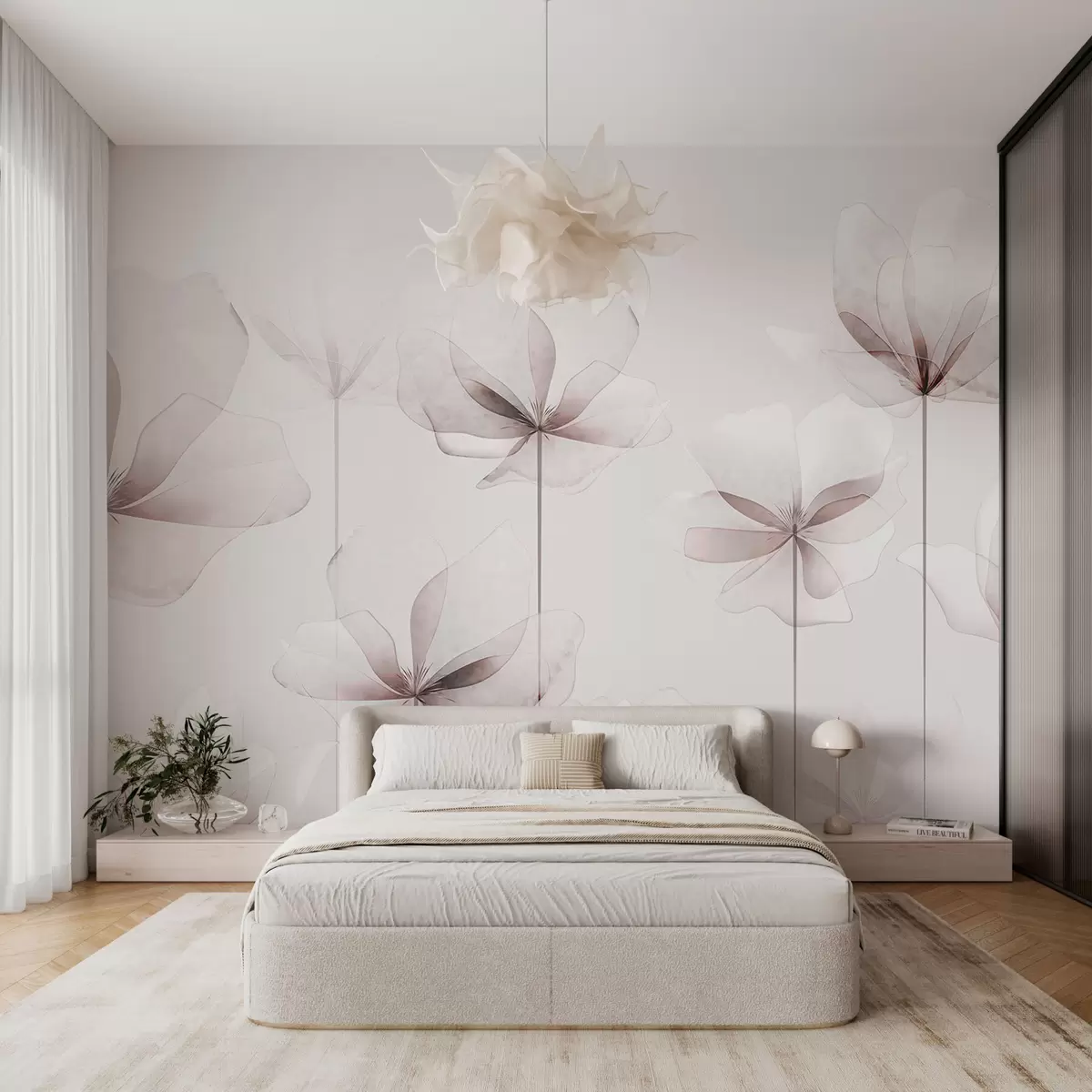 Fototapeta Delikatne przezroczyste kwiaty 3D trend w nowoczesnym stylu art deco Nr w00895