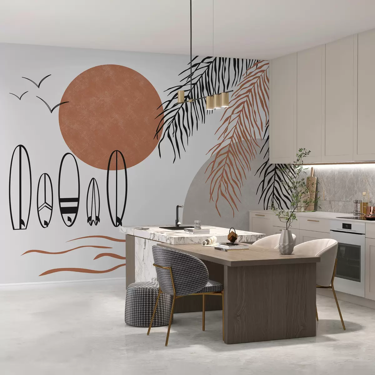 Fototapeta Deski surfingowe, rysunek linii gałęzi palmowych, kolor czarny i czerwony Nr w00958