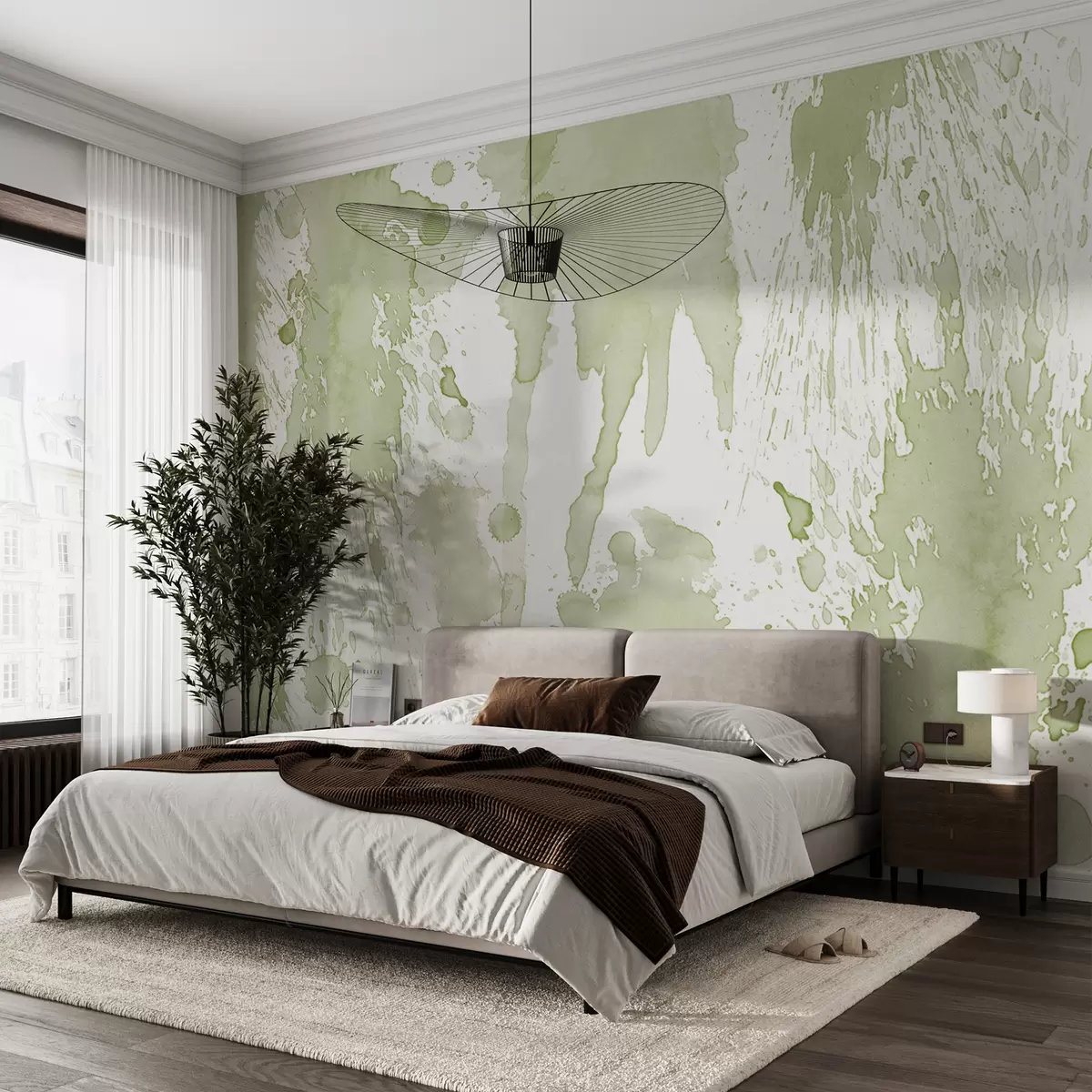 Fototapeta Plamy akwarelowe, abstrakcja rysunku farby, kolor zielony Nr w01285