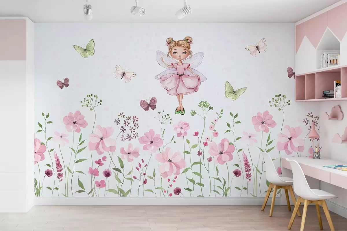 Fototapeta Wróżka wśród kwiatów i motyli Nr w01460