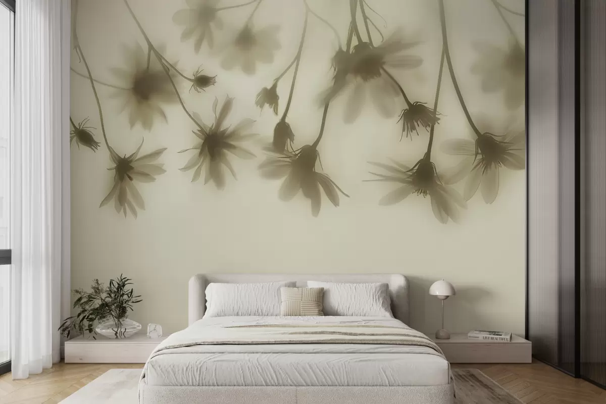 Fototapeta Delikatne kwiaty we mgle zwisające z góry w pastelowych kolorach Nr w01469v1