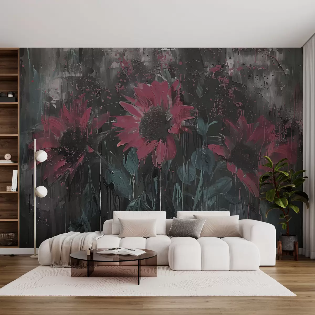 Fototapeta Abstrakcyjny obraz słonecznika, ciemnoszare tło i odcienie czerwieni i różu Nr w01480v1