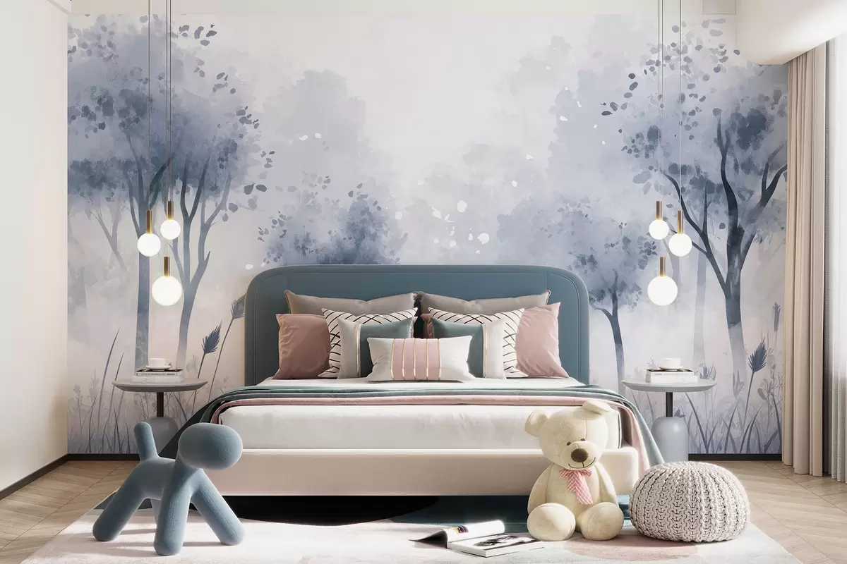 Fototapeta Akwarelowy las z trawą i drzewami, kolor szary Nr w01546v2