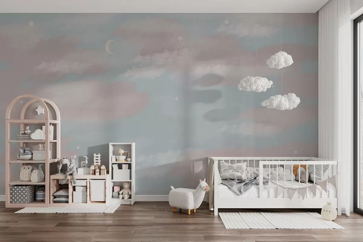 Fototapeta Magiczne niebo z chmurami, księżycem i gwiazdami Nr w01549
