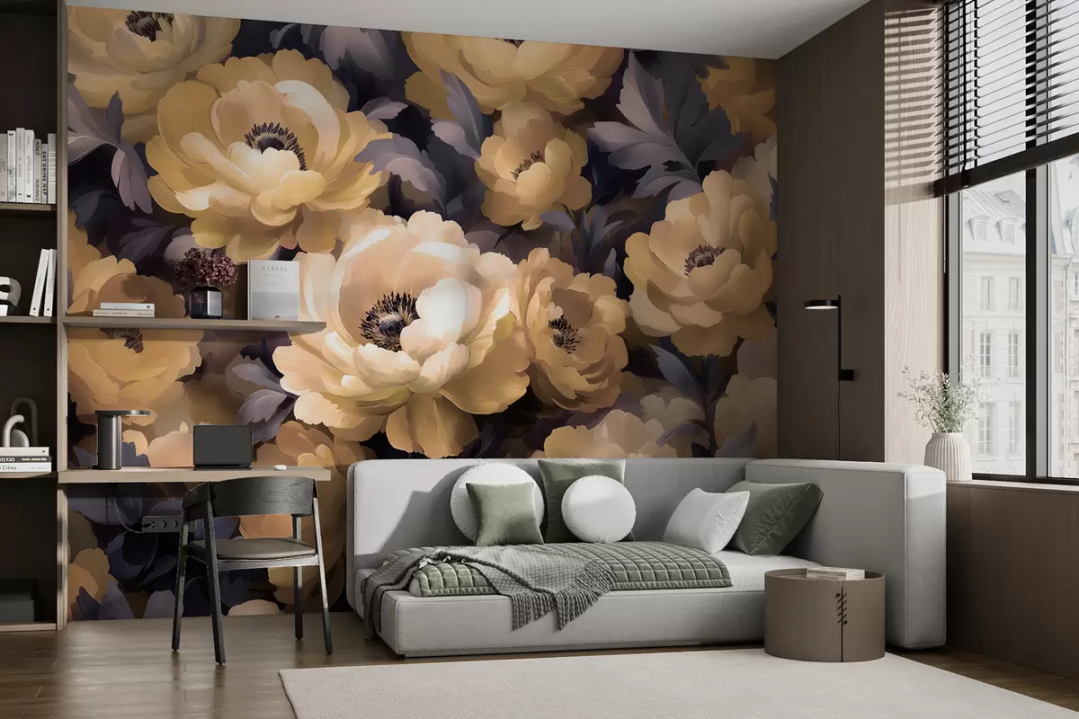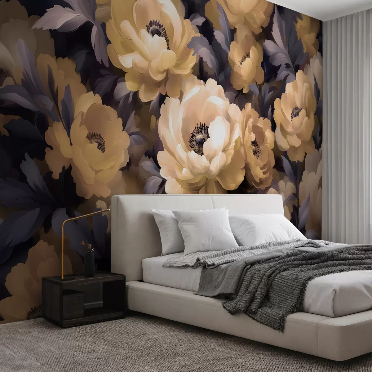 Fototapeta Kwiecisty obraz olejny oparty na beżowym i fioletowym kolorze Nr w01581